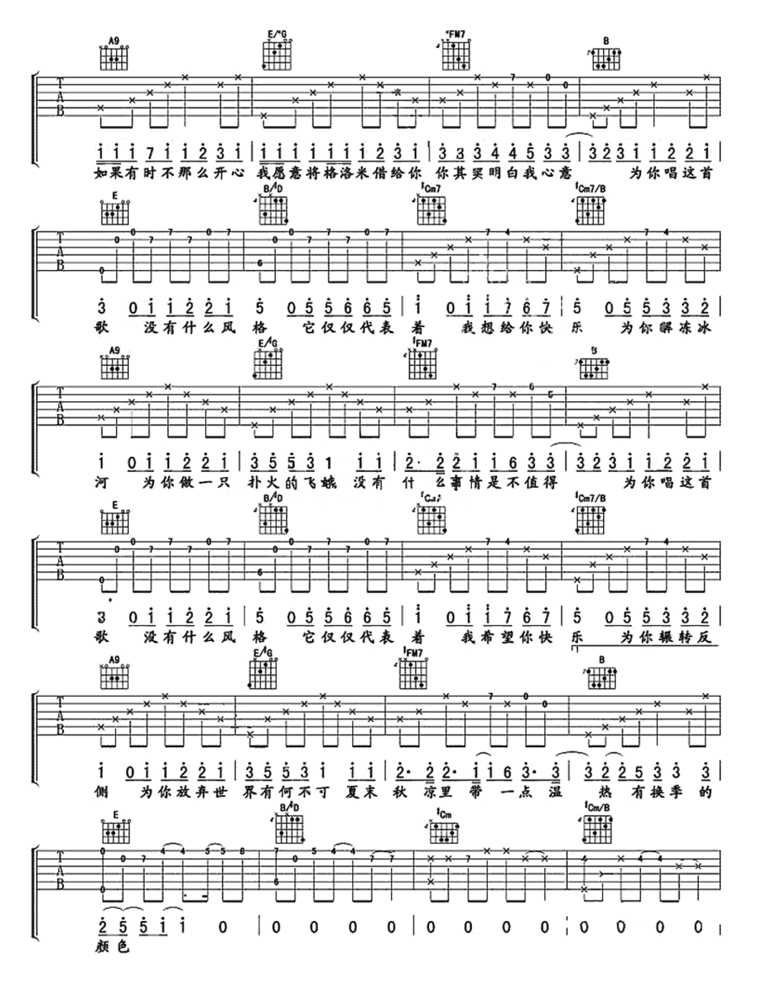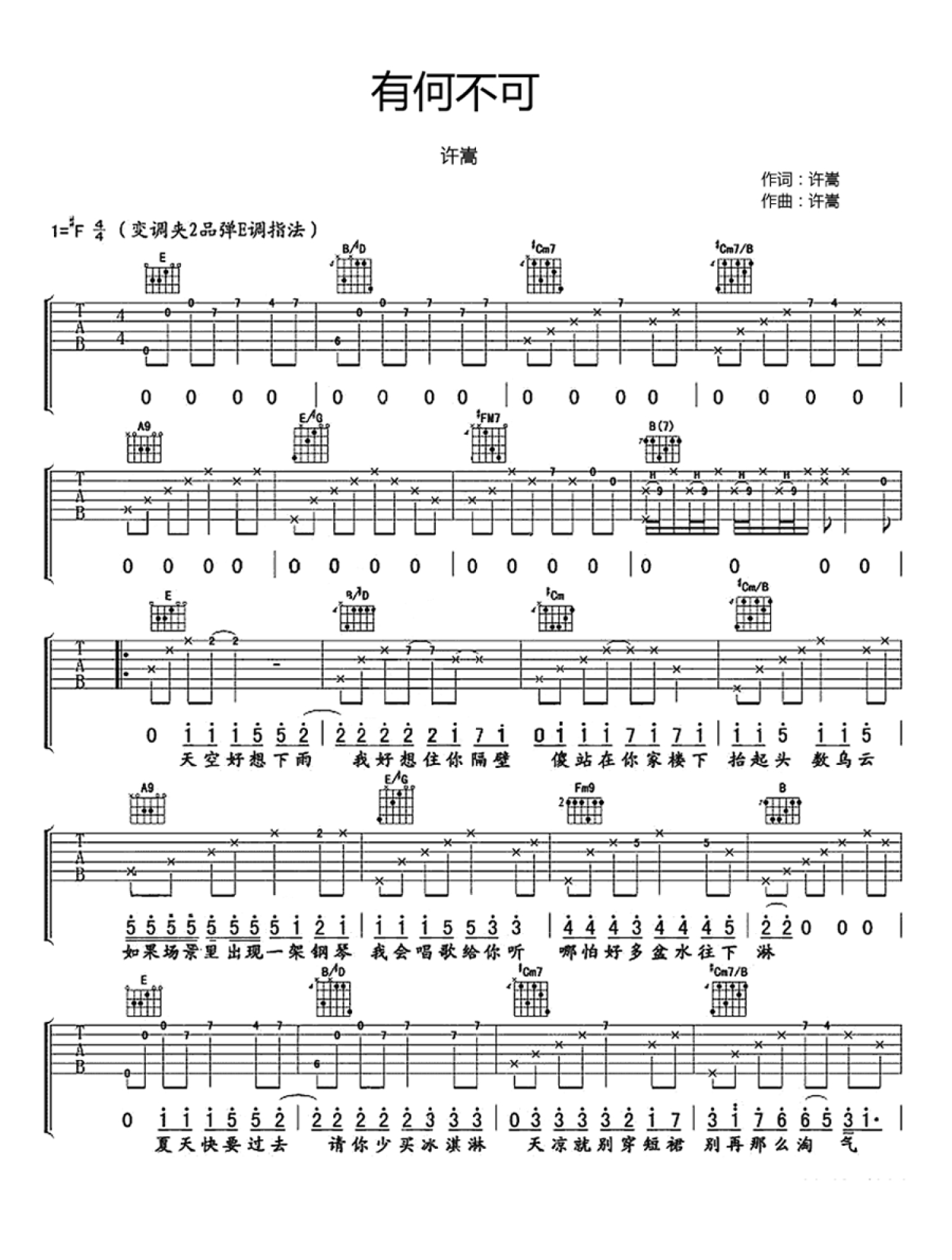 有何不可吉他谱 - 许嵩 - 吉他弹唱谱