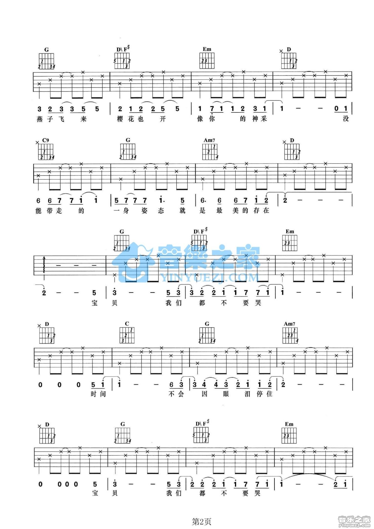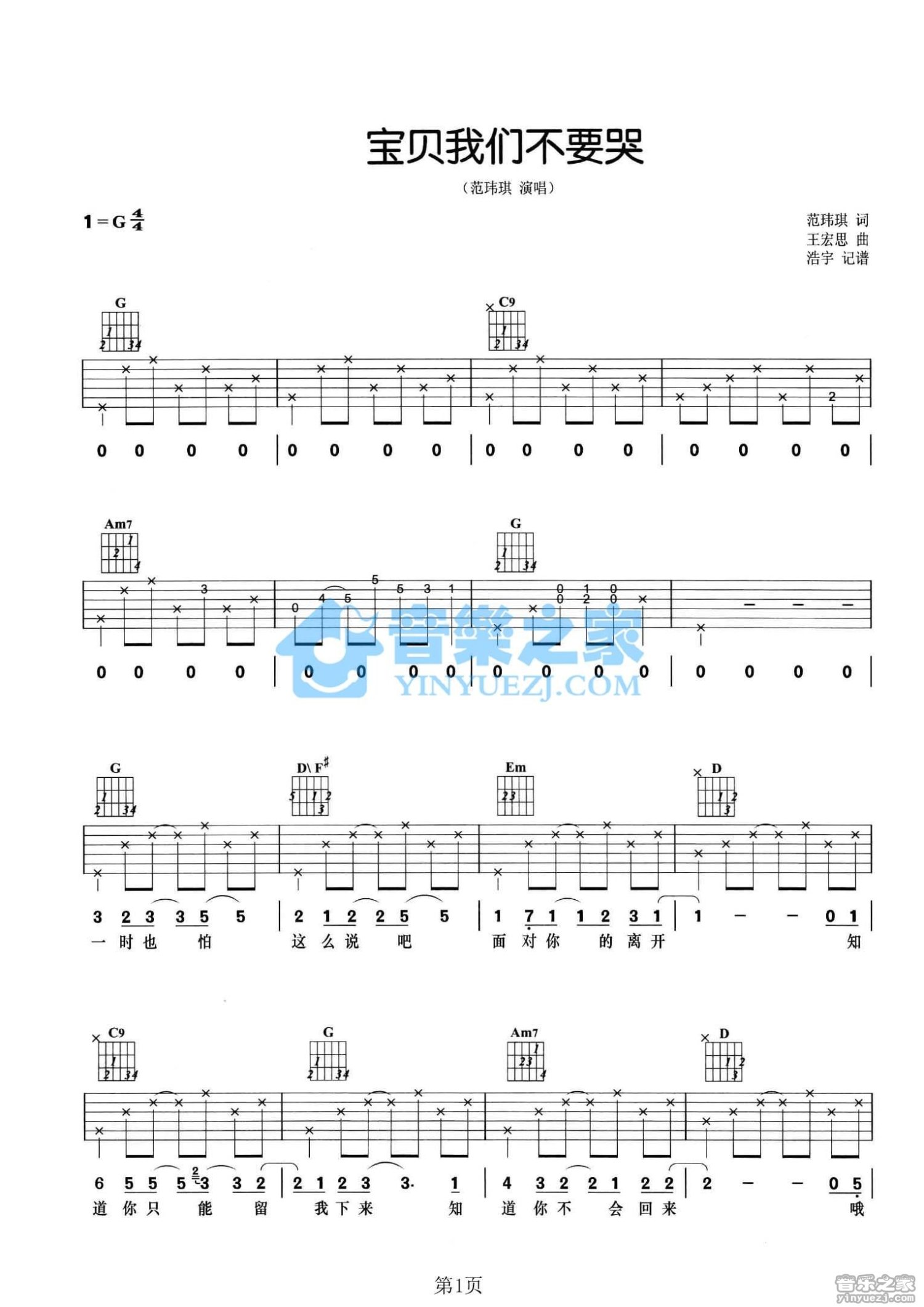 曲谱介绍: G调版范玮琪《宝贝我们不要哭》吉他弹唱六线谱