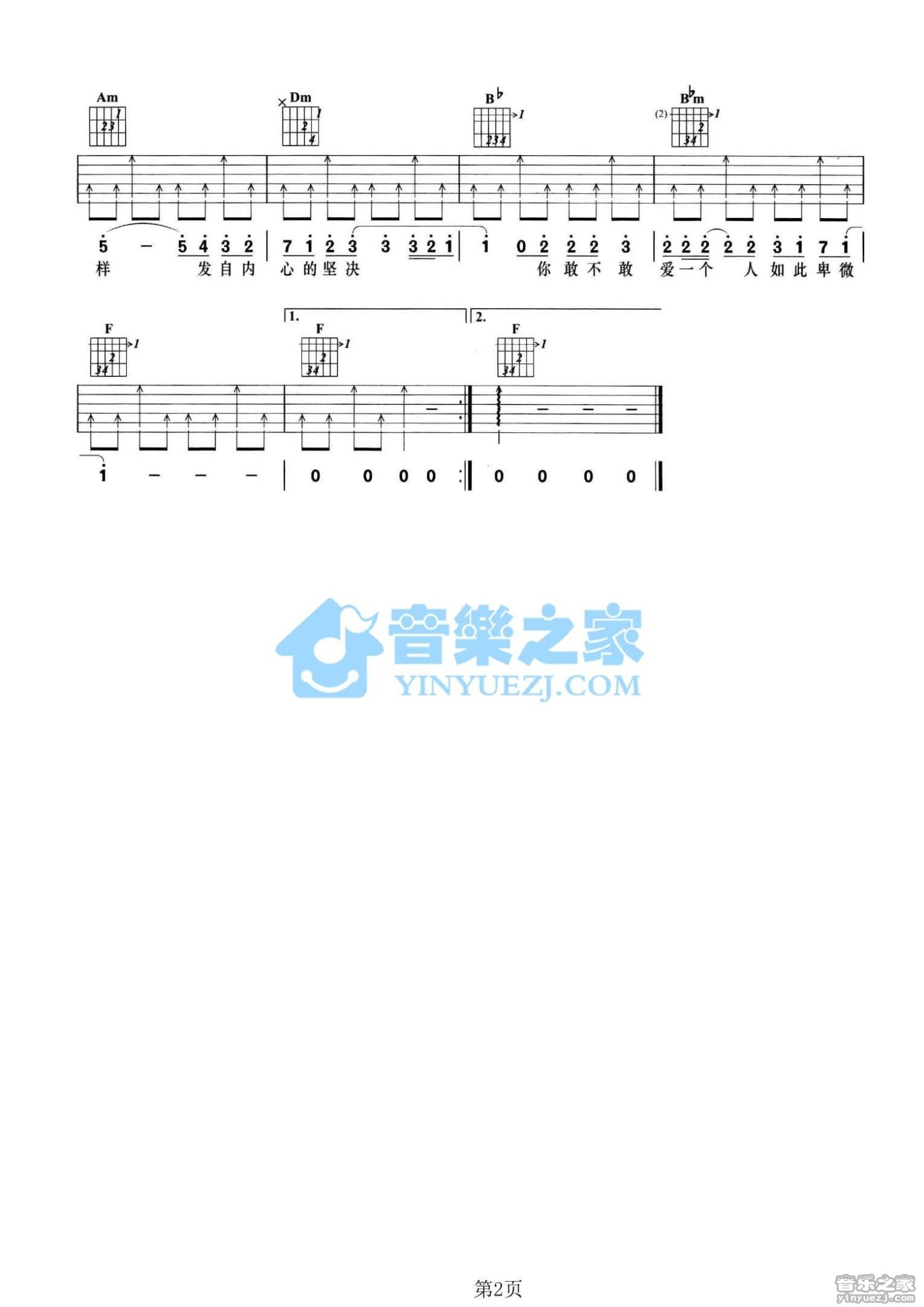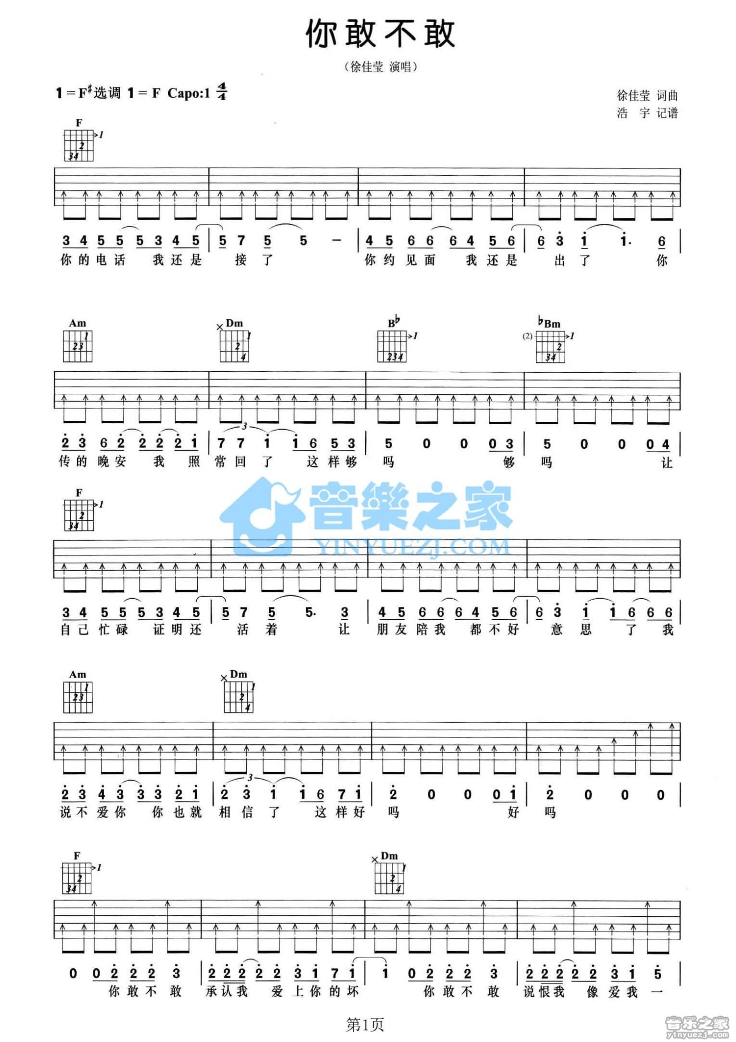 曲谱介绍: F调版《你敢不敢》吉他弹唱六线谱