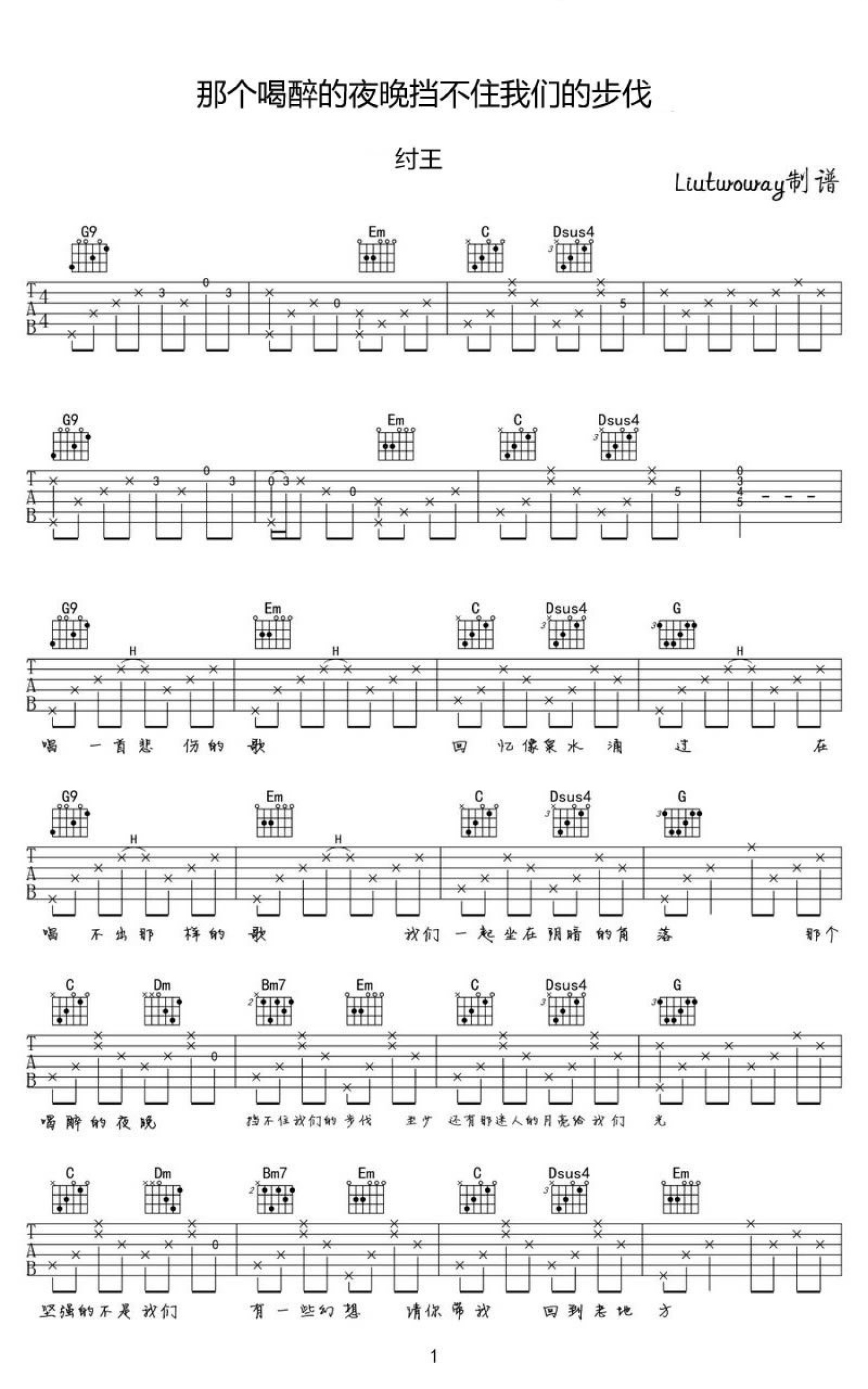 那个喝醉的夜晚挡不住我们的步伐吉他谱 - 纣王 - 吉他弹唱谱