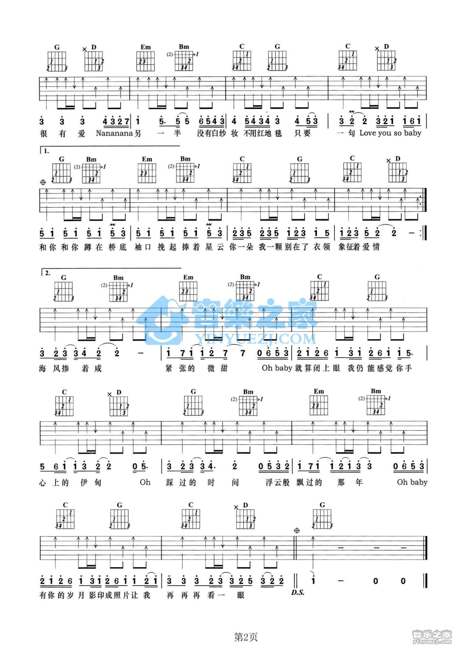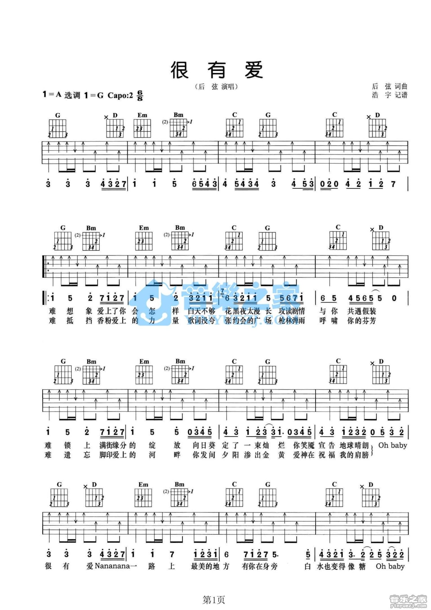 曲谱介绍: G调版后弦《很有爱》吉他弹唱六线谱