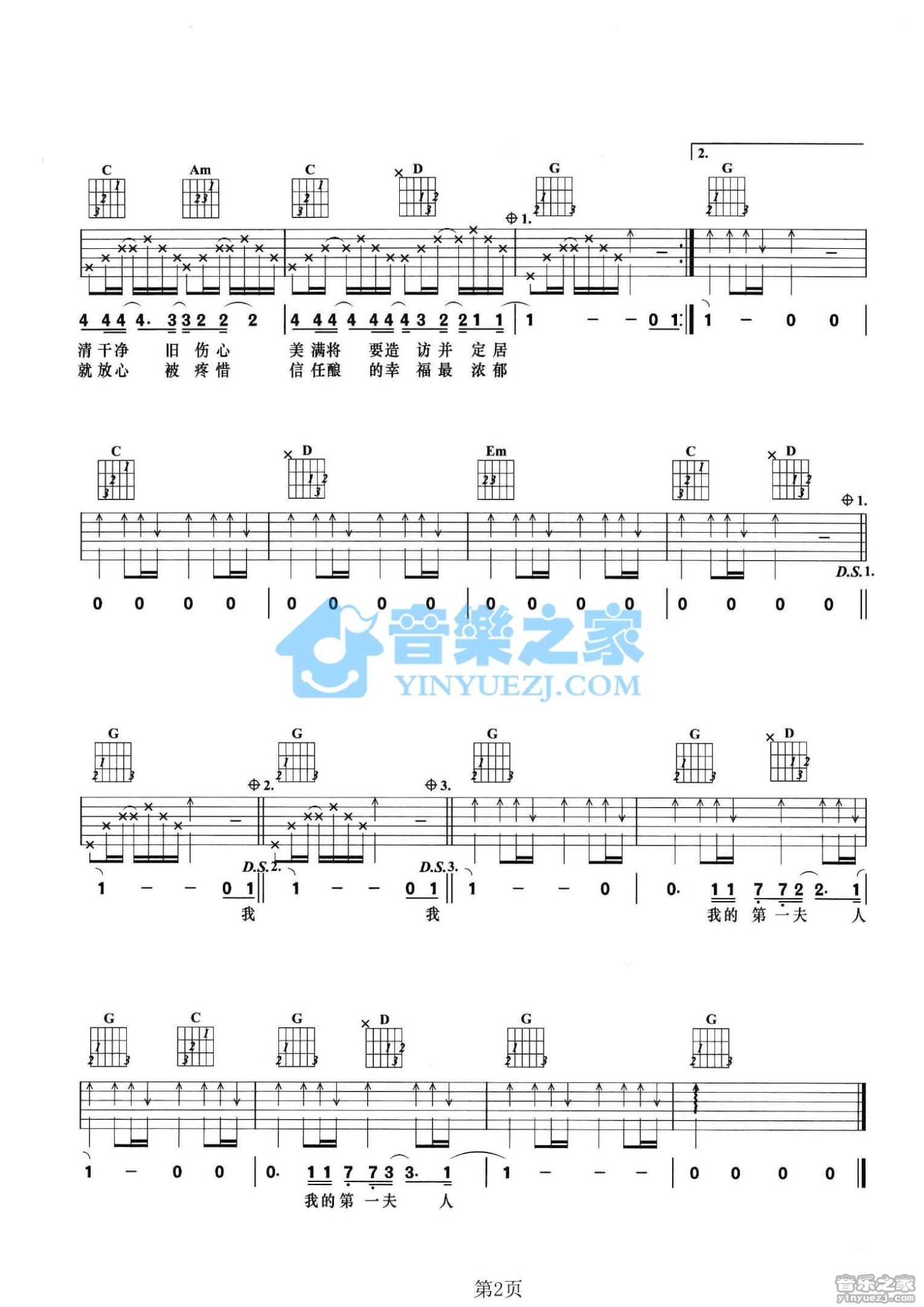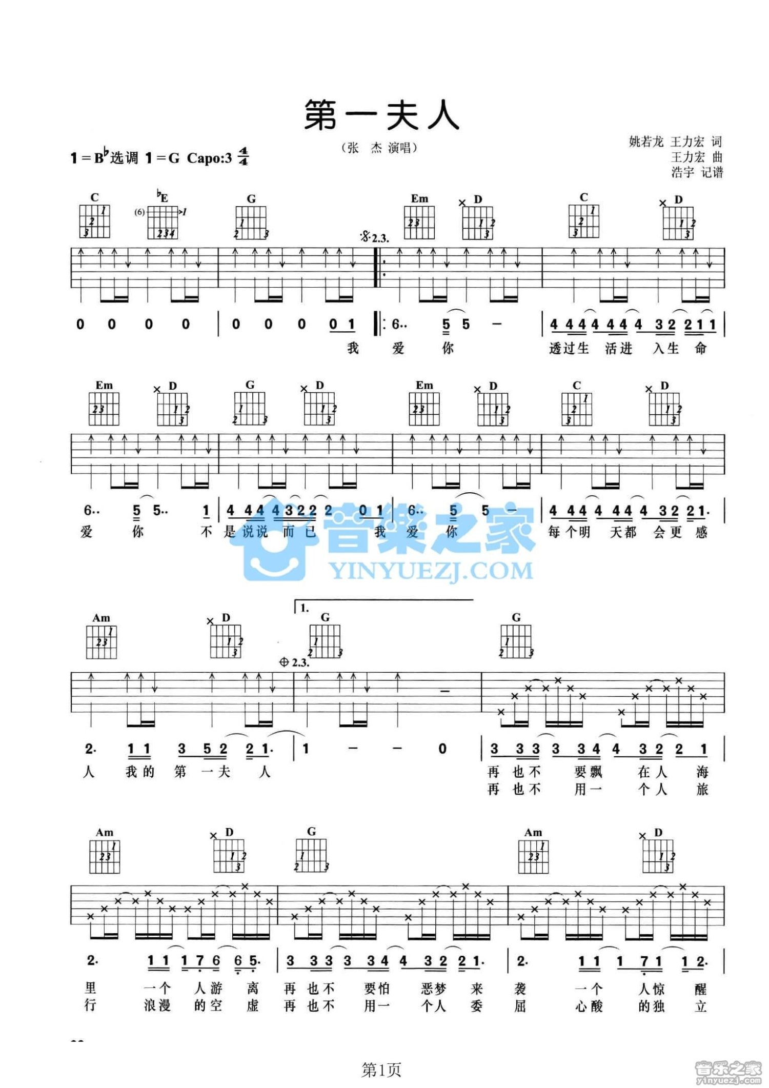 曲谱介绍: G调版张杰《第一夫人》吉他弹唱六线谱