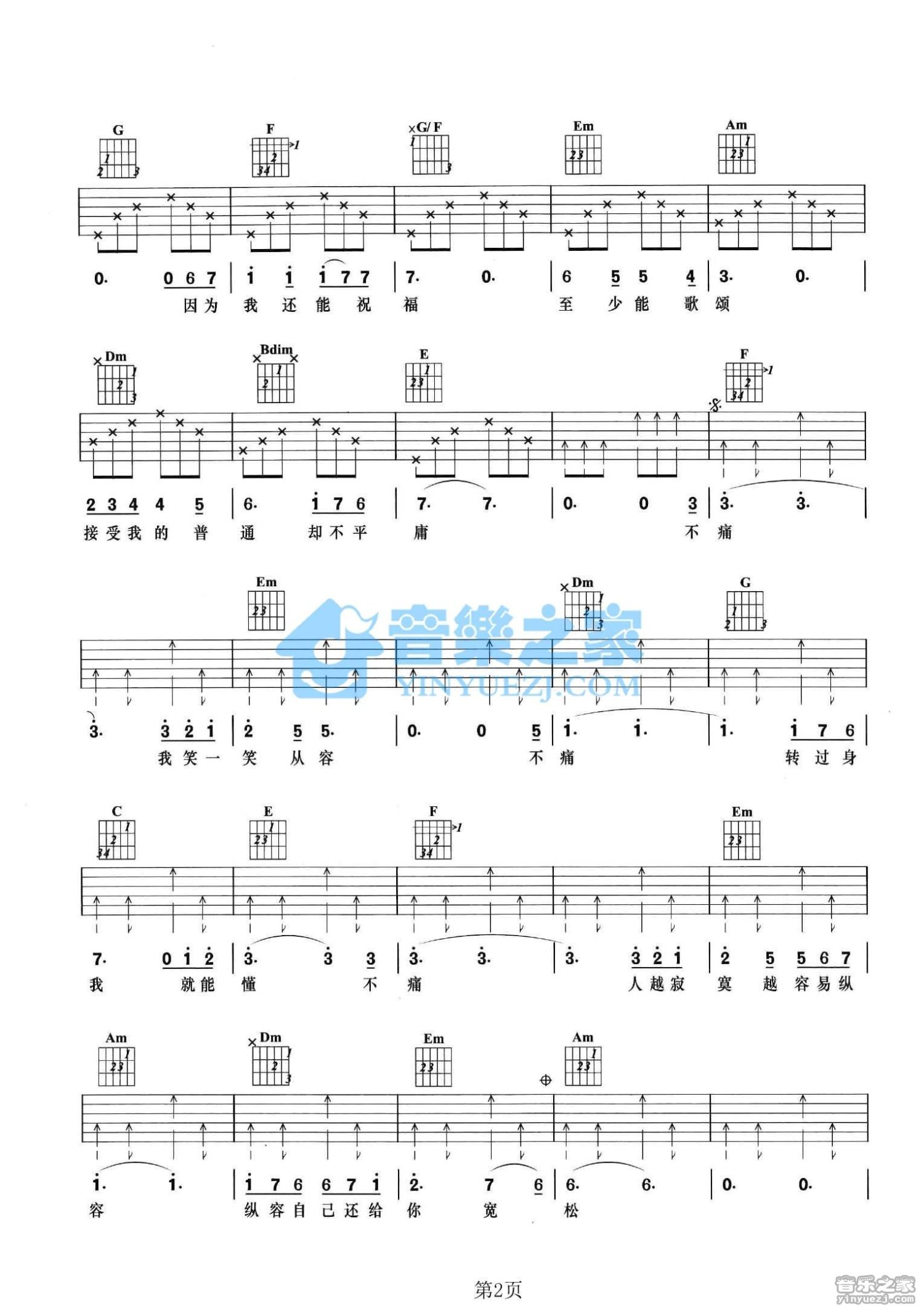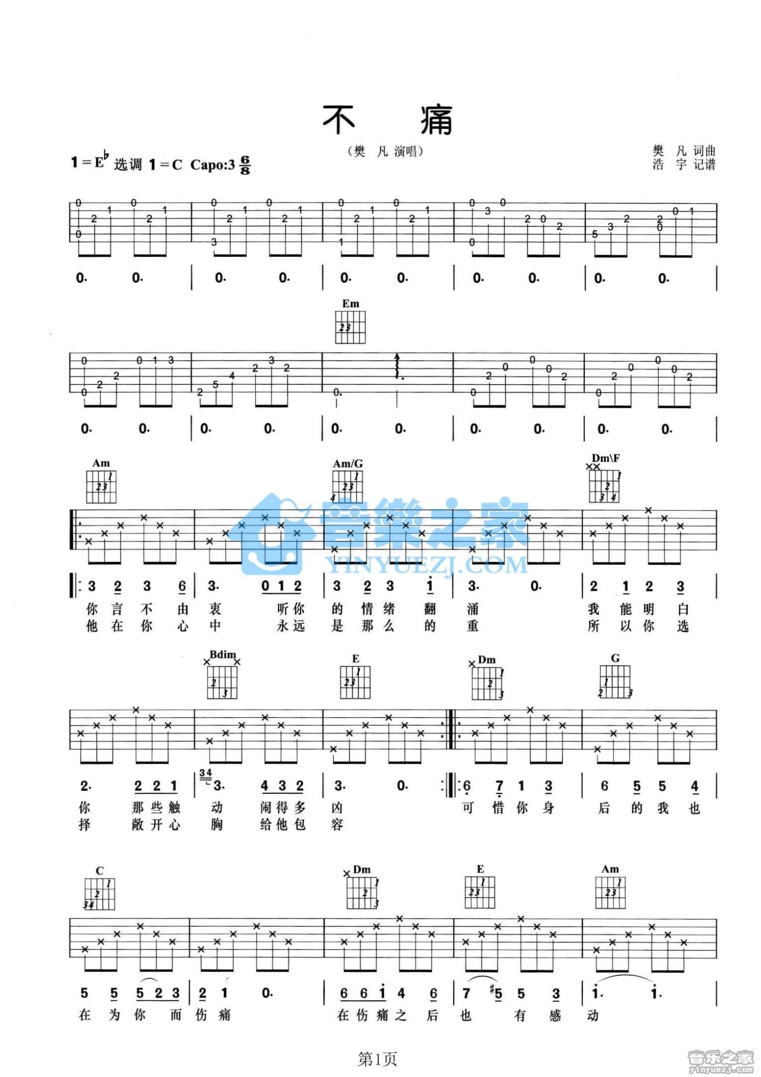 曲谱介绍: C调版樊凡《不痛》吉他弹唱六线谱