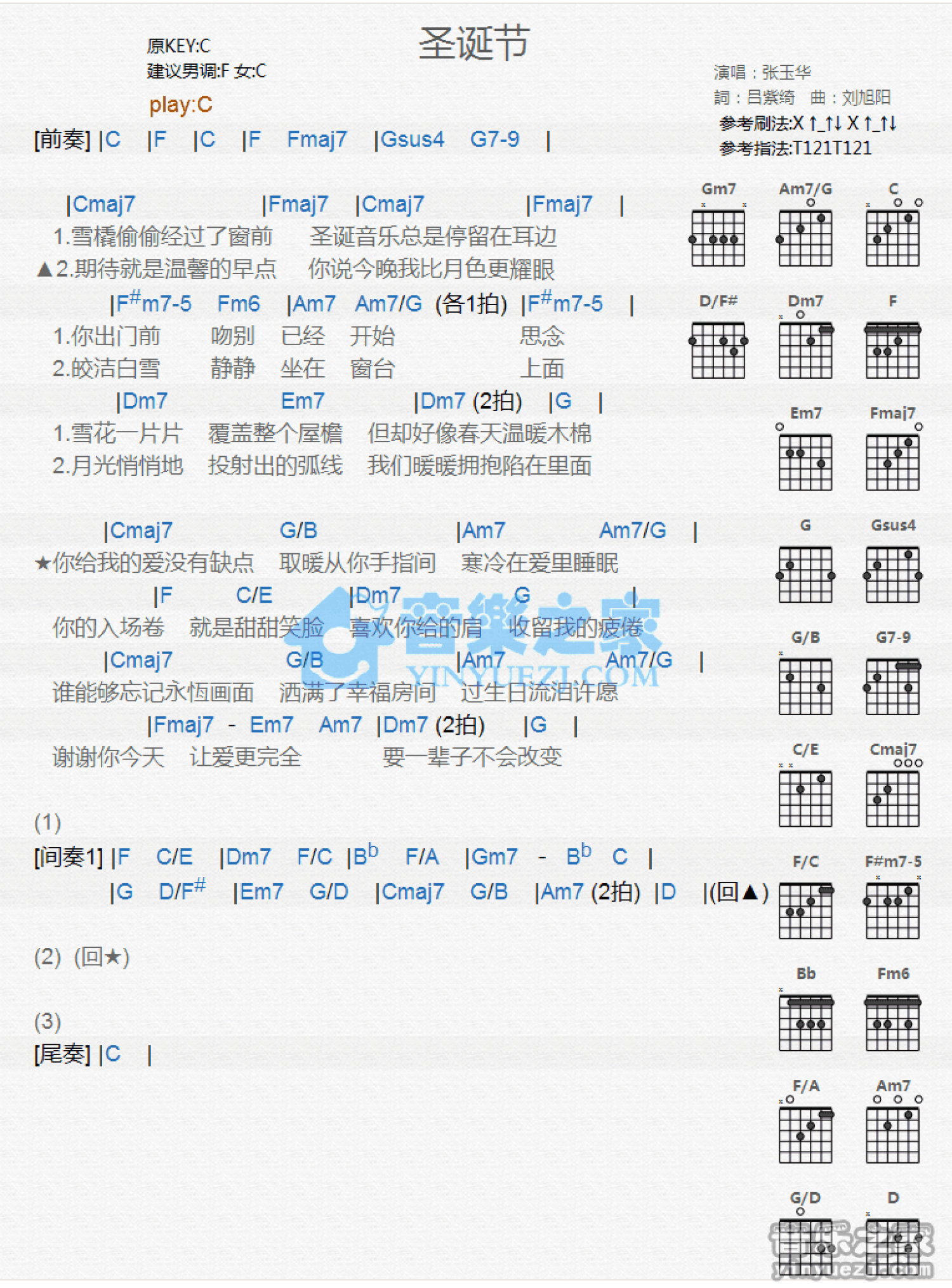 圣诞节吉他谱 - 张玉华 - C调吉他弹唱谱 - 和弦谱