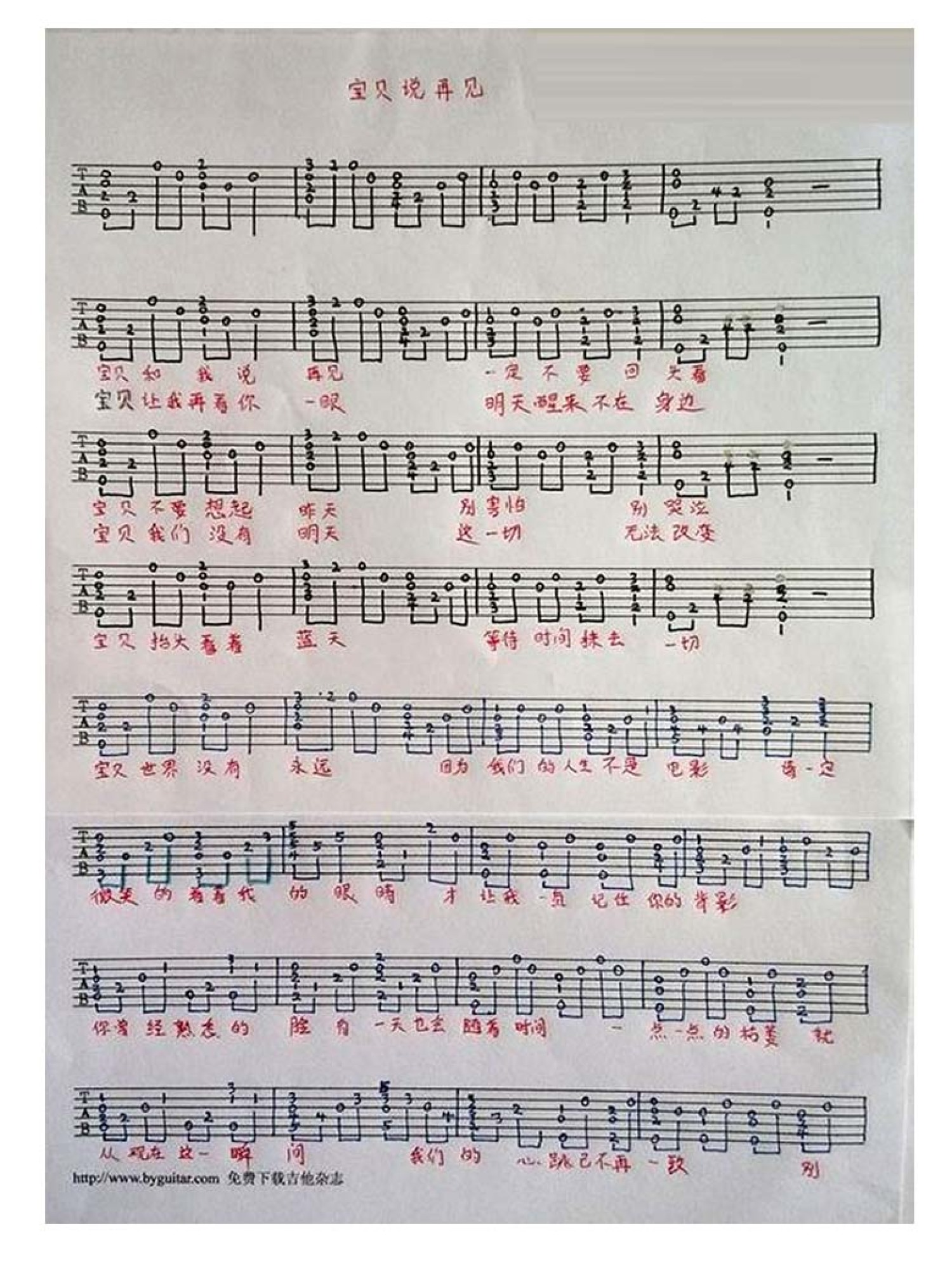 当前位置:琴谱网>吉他弹唱>宝贝说再见