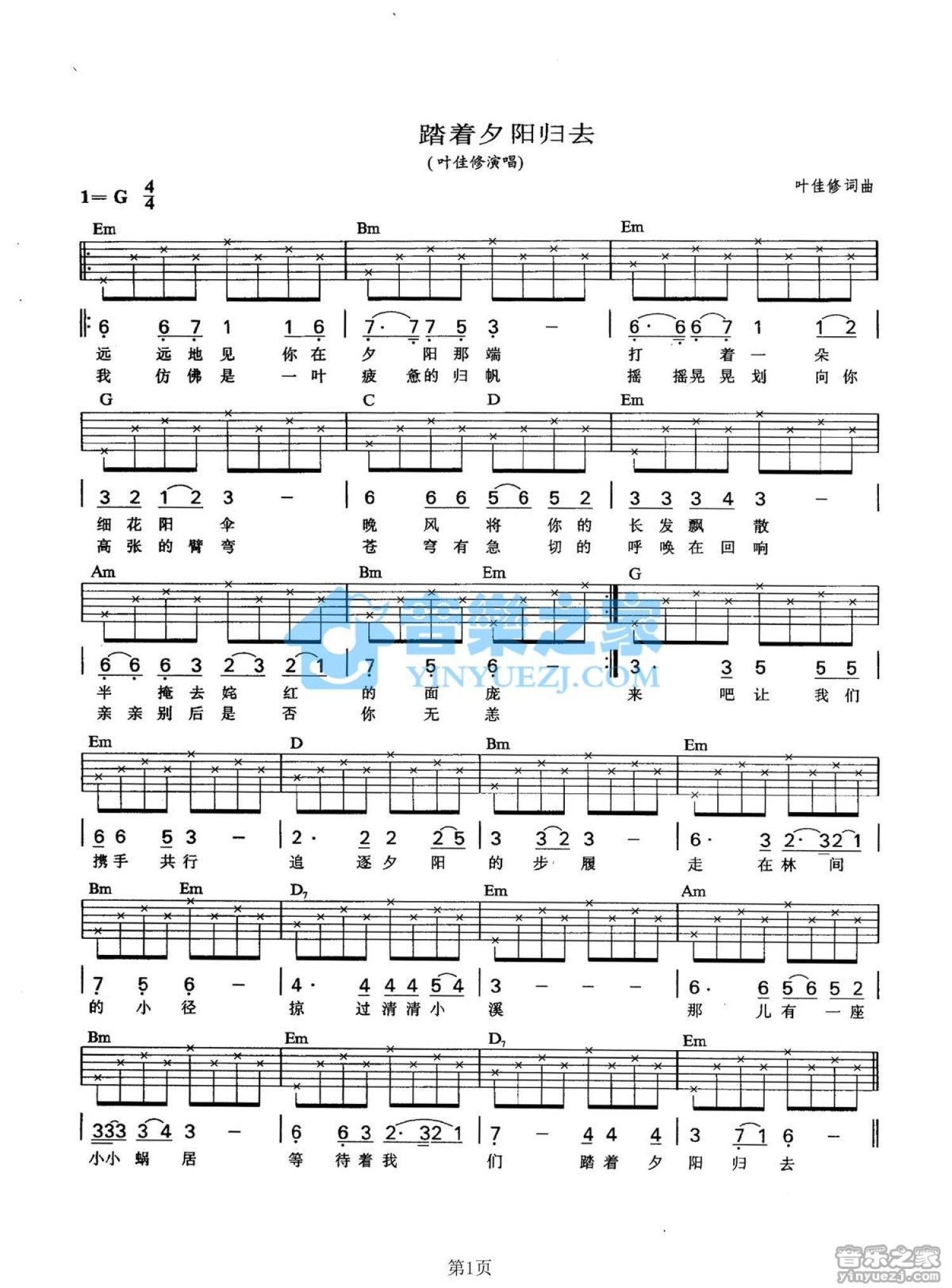 踏着夕阳归去吉他谱 - 叶佳修 - G调吉他弹唱谱