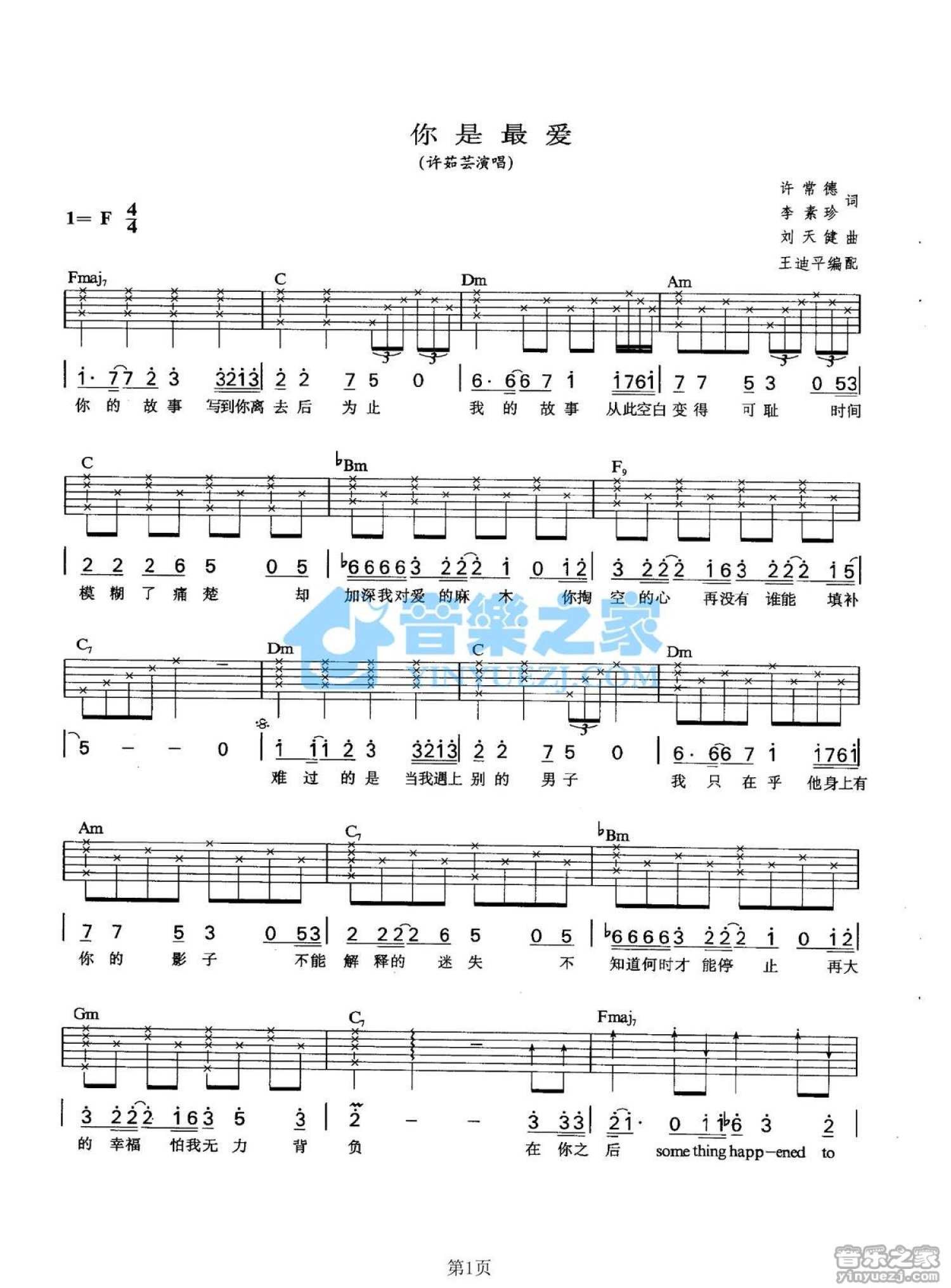 当前位置:琴谱网>吉他弹唱>你是最爱