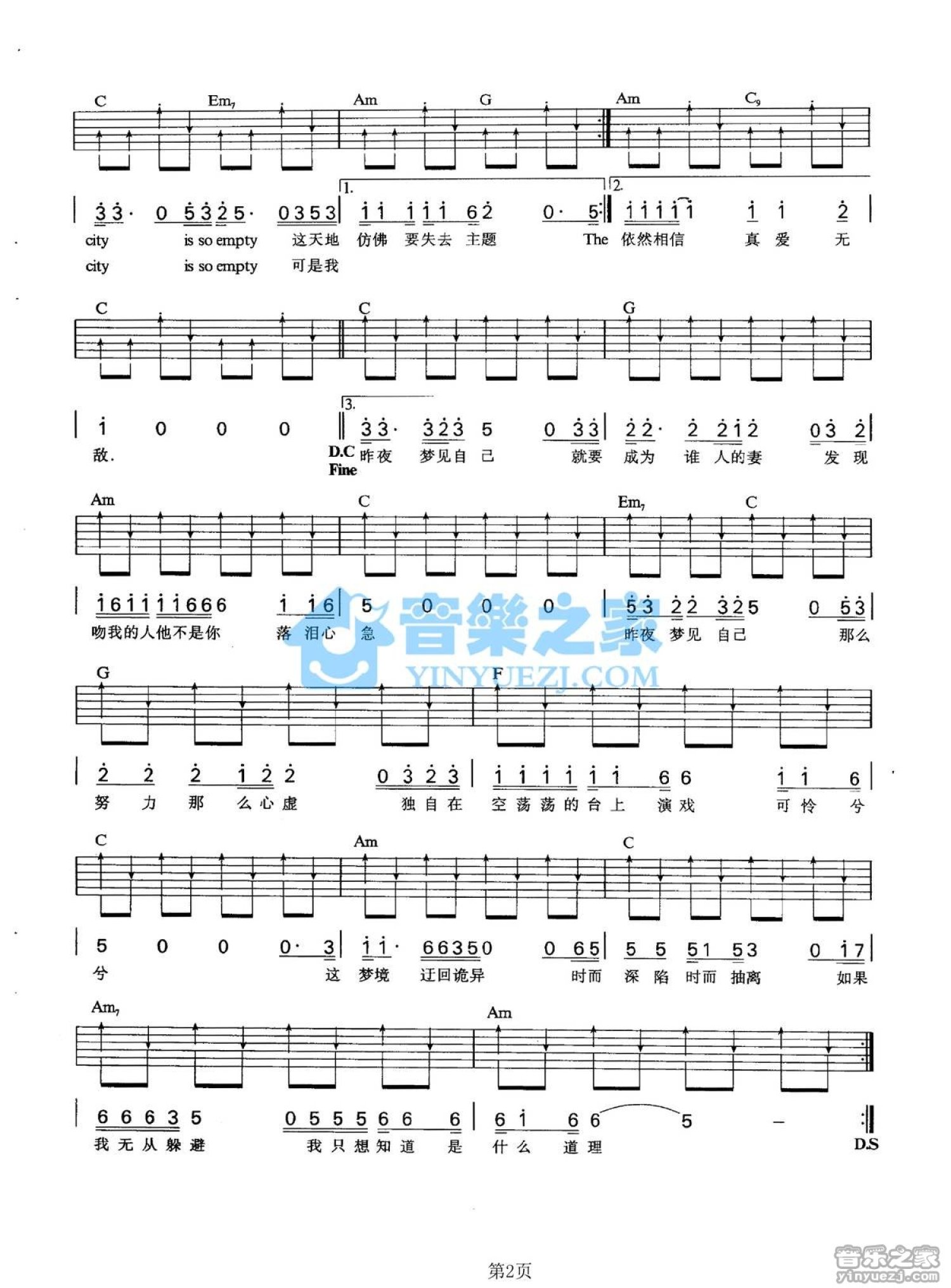 吉他弹唱C调来源:YYZJ427 浏览2021-02-18 17:23发布图谱共2页