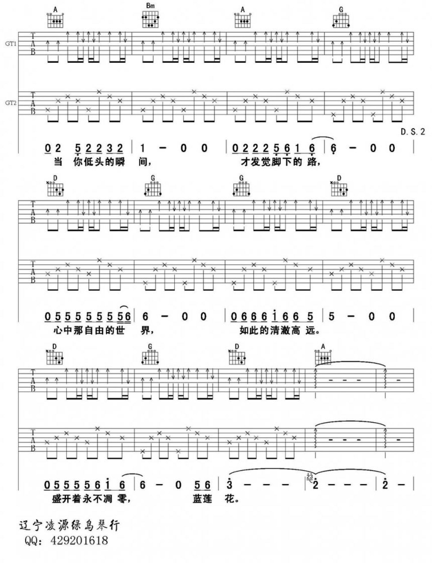 蓝莲花吉他谱 - 许巍 - D调吉他弹唱谱 - 双吉他版本