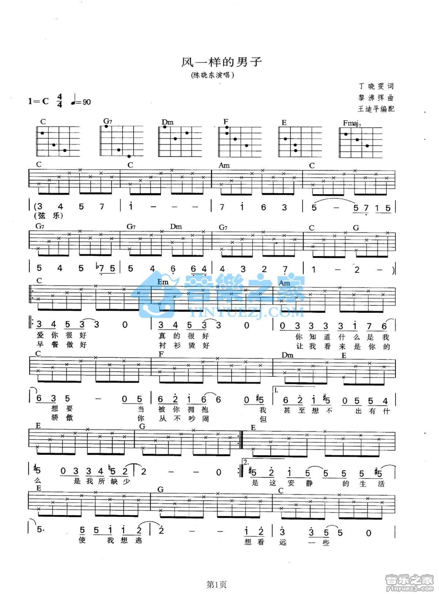 曲谱介绍: C调版陈晓东《风一样的男子》吉他弹唱六线谱