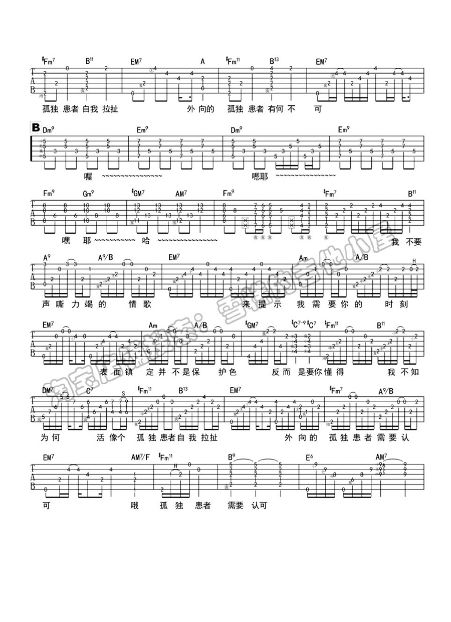 当前位置:琴谱网>吉他弹唱>孤独患者