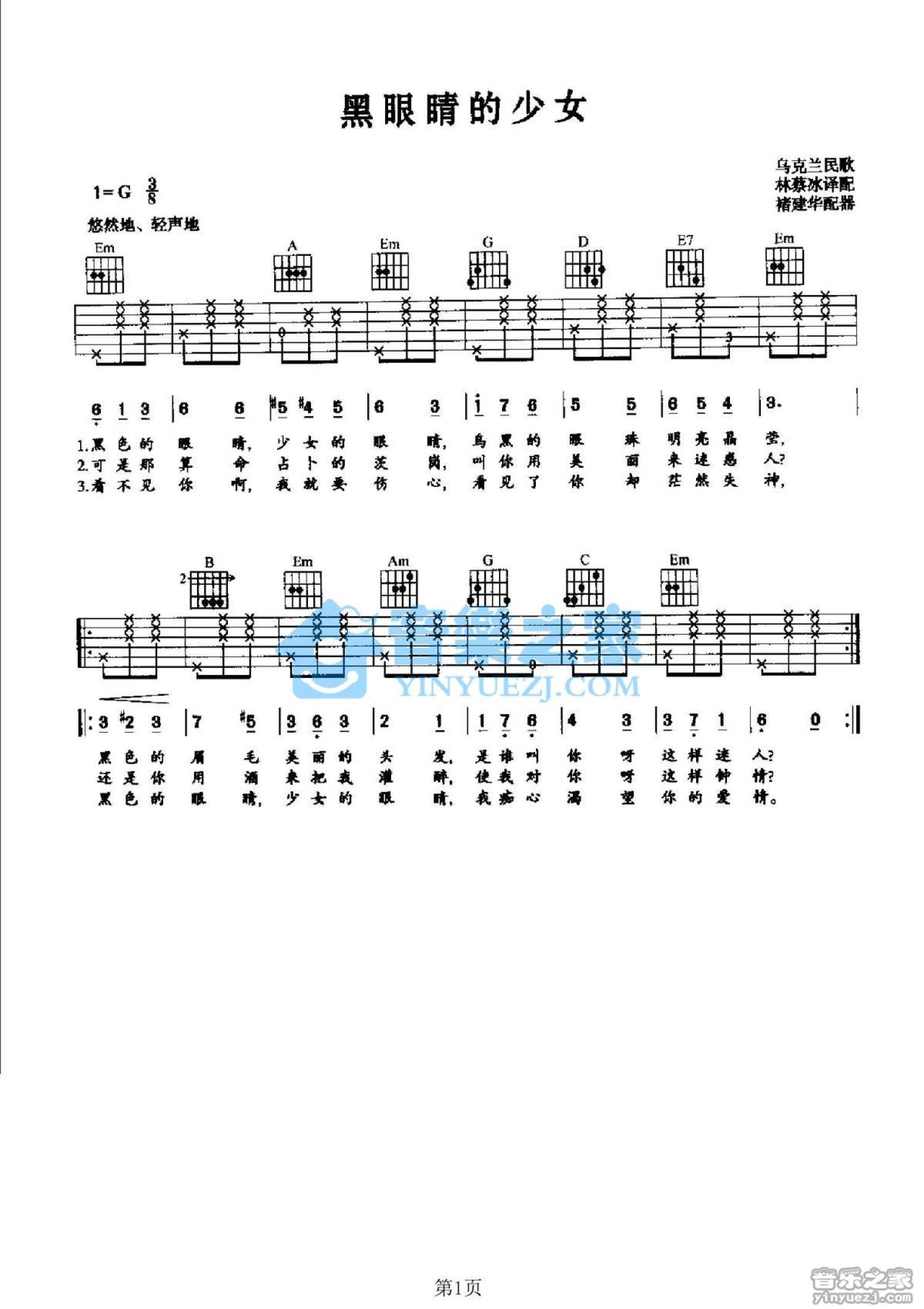 黑眼睛的少女吉他谱 - 乌克兰民歌 - G调吉他弹唱谱