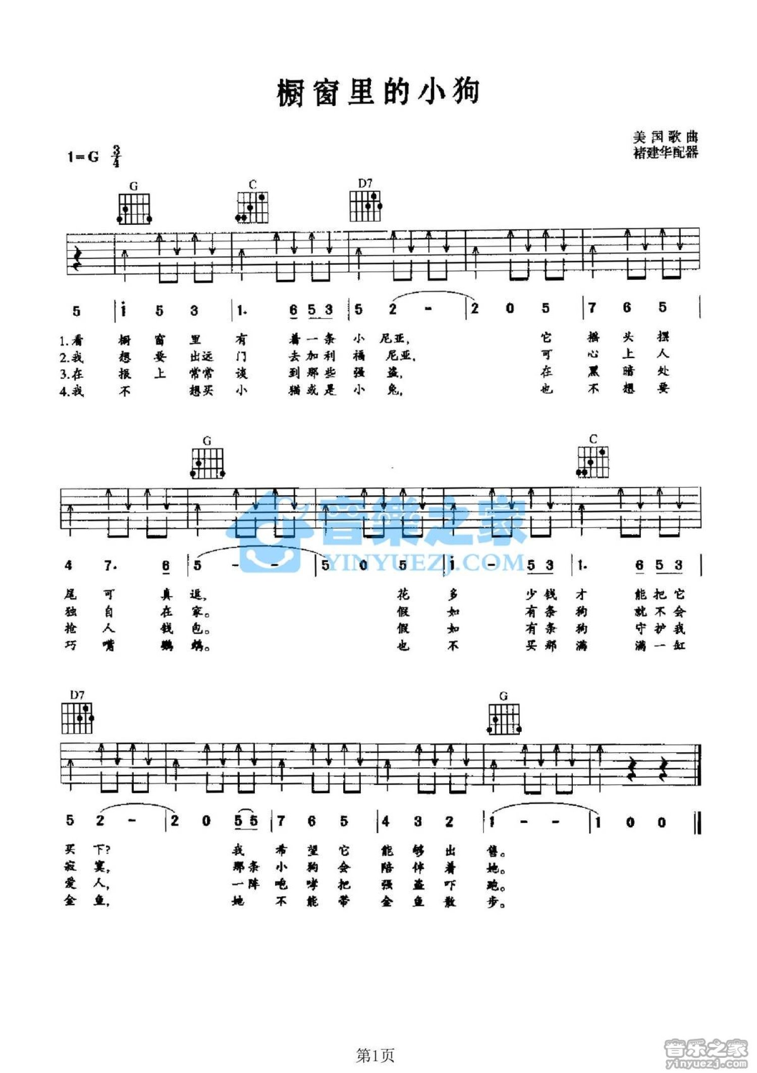 橱窗里的小狗吉他谱 - 美国歌曲 - G调吉他弹唱谱