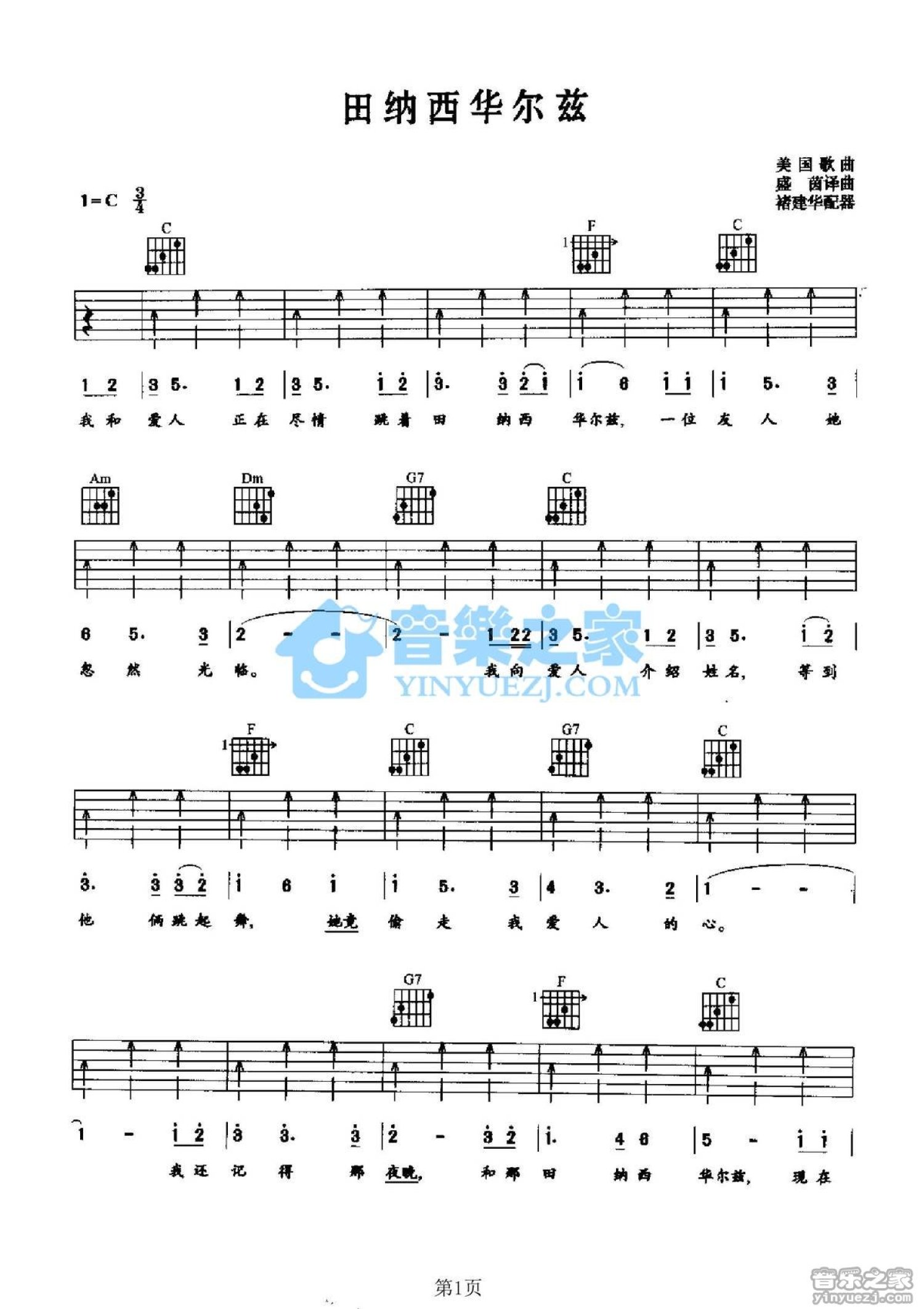 曲谱介绍: C调版美国歌曲《田纳西华尔兹》吉他弹唱六线谱