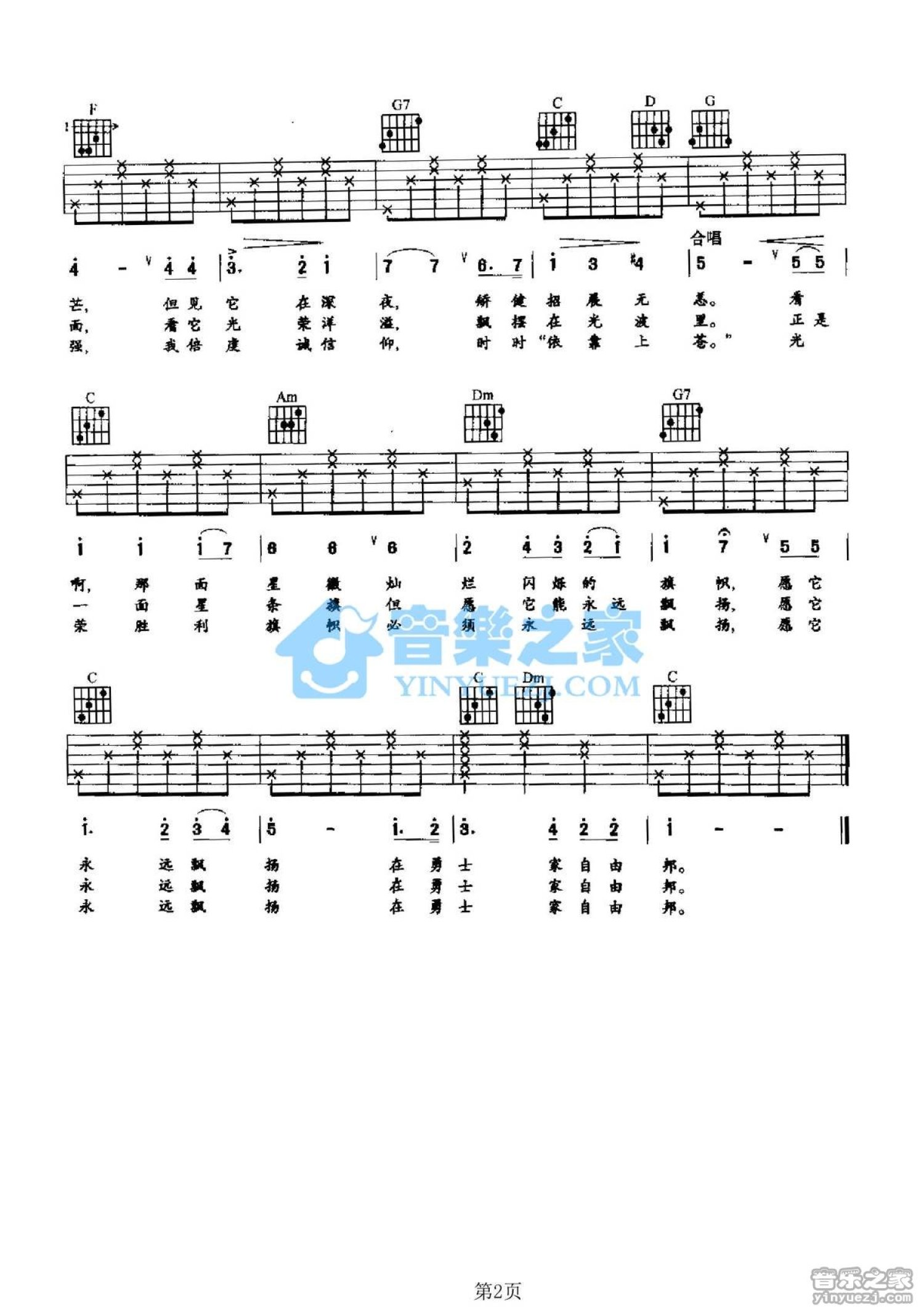 星条旗永不落吉他谱 - 美国国歌 - C调吉他弹唱谱