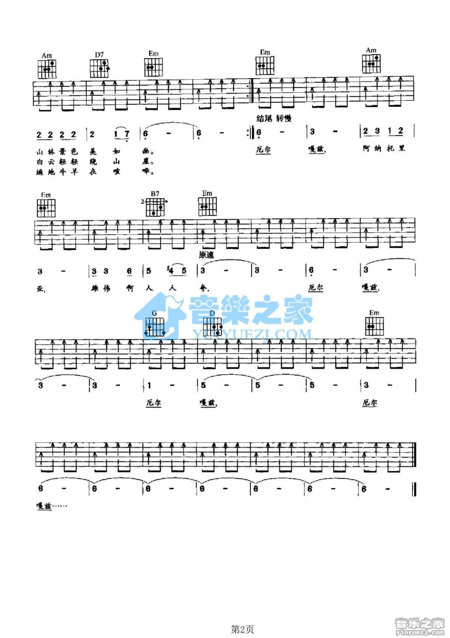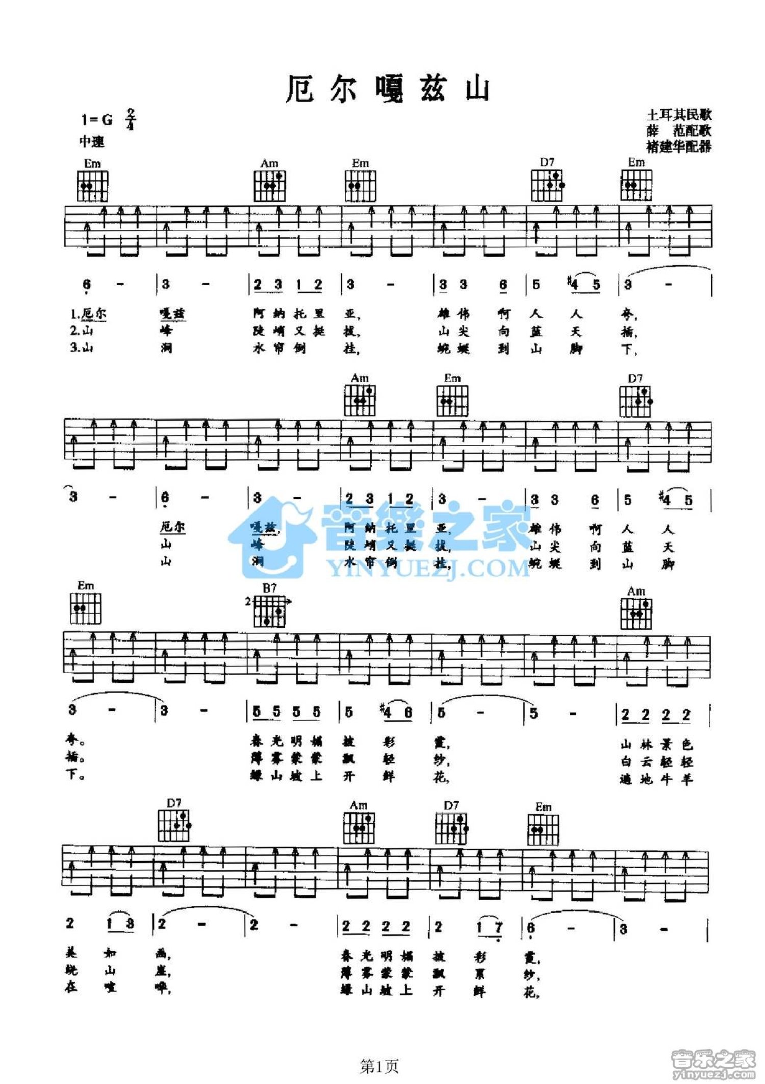 曲谱介绍: G调版土耳其民歌《厄尔嘎兹山》吉他弹唱六线谱