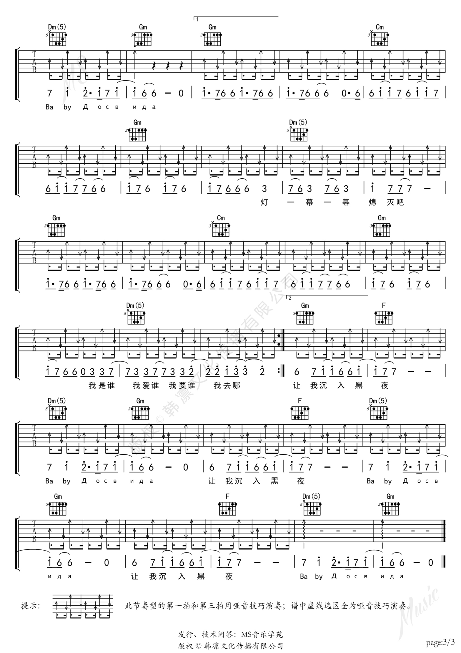 曲谱介绍: bB调简单《Baby,达尼亚》吉他弹唱六线谱