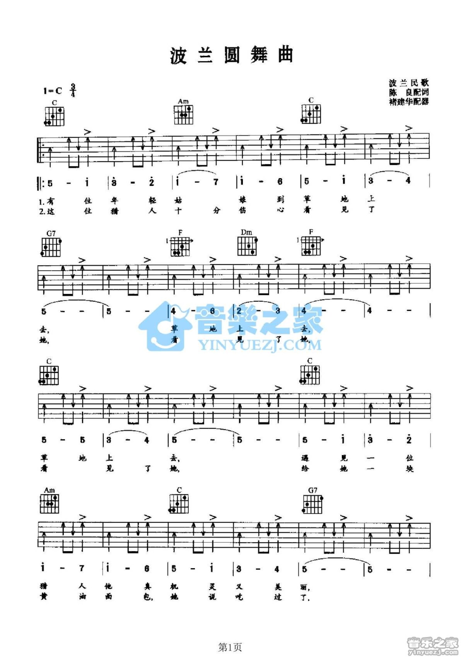波兰圆舞曲吉他谱 - 波兰民歌 - C调吉他弹唱谱
