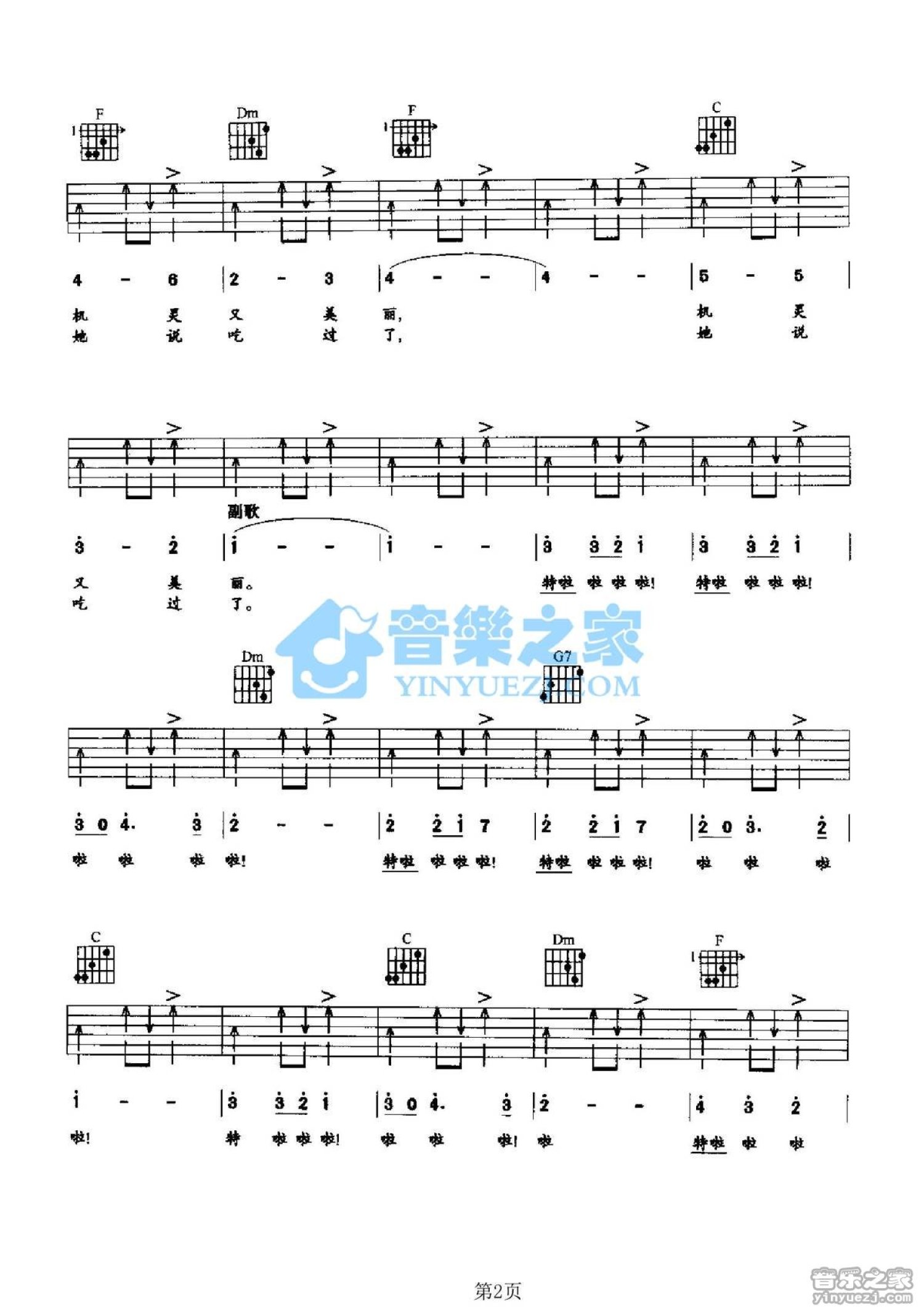 曲谱介绍: C调版波兰民歌《波兰圆舞曲》吉他弹唱六线谱