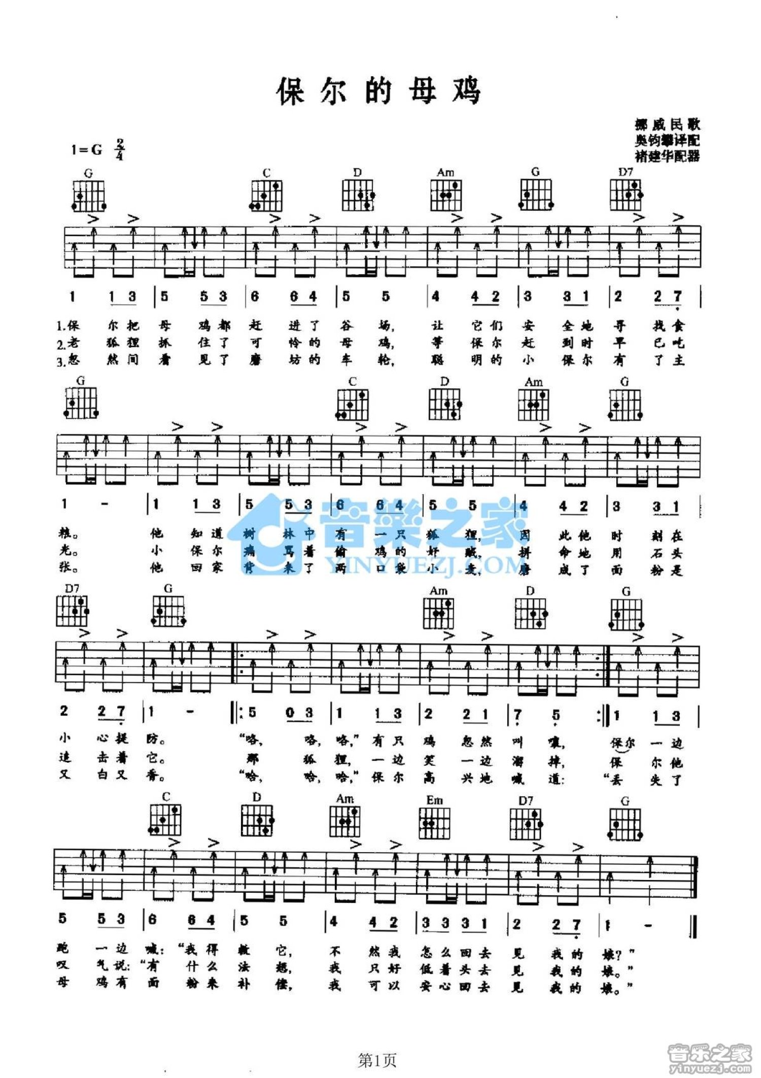 保尔的母鸡吉他谱 - 挪威民歌 - G调吉他弹唱谱