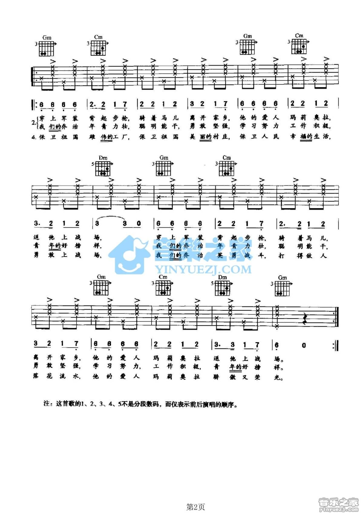 曲谱介绍: bB调版罗马尼亚民歌《乔治参军去》吉他弹唱六线谱