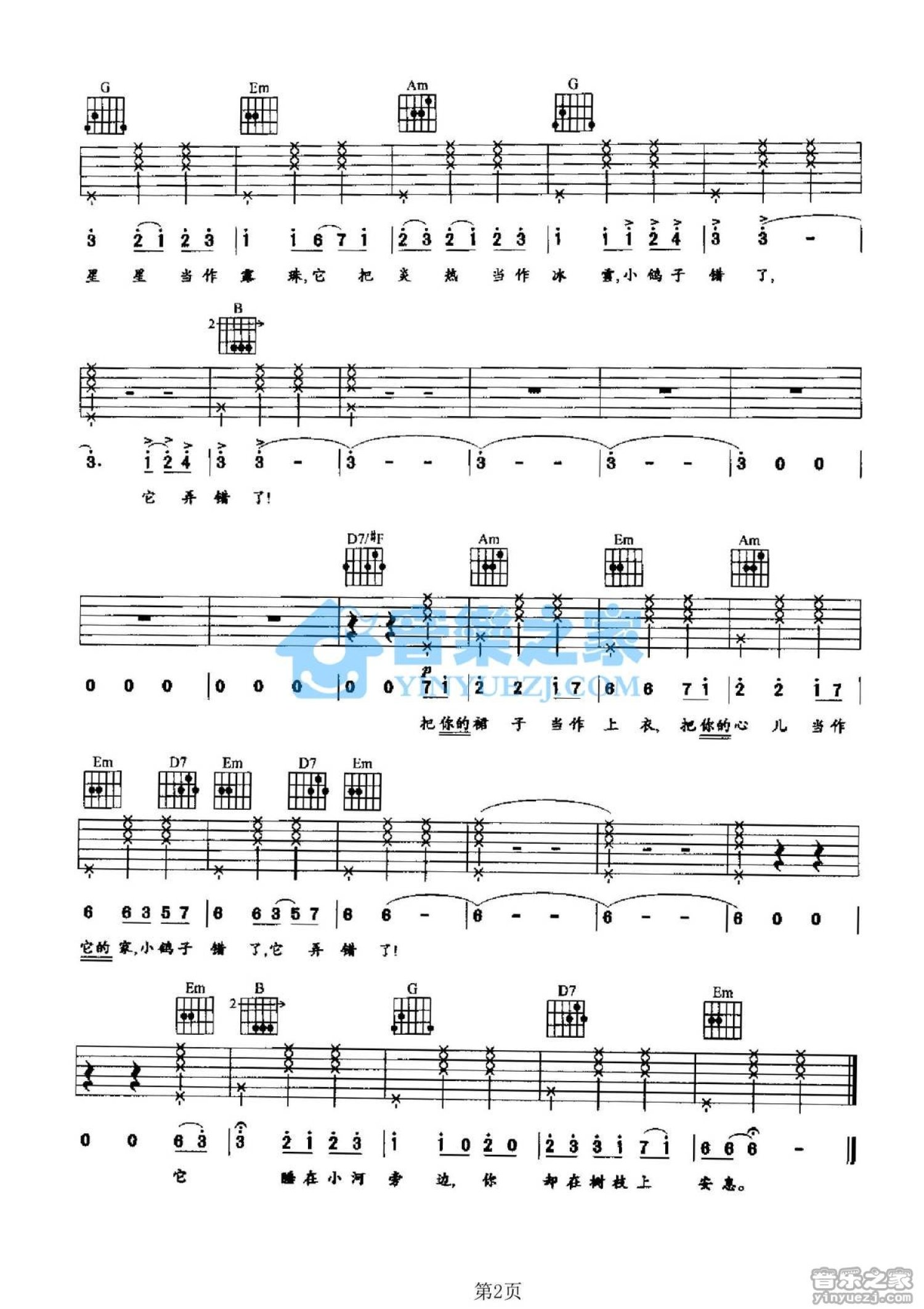 当前位置:琴谱网>吉他弹唱>小鸽子错了