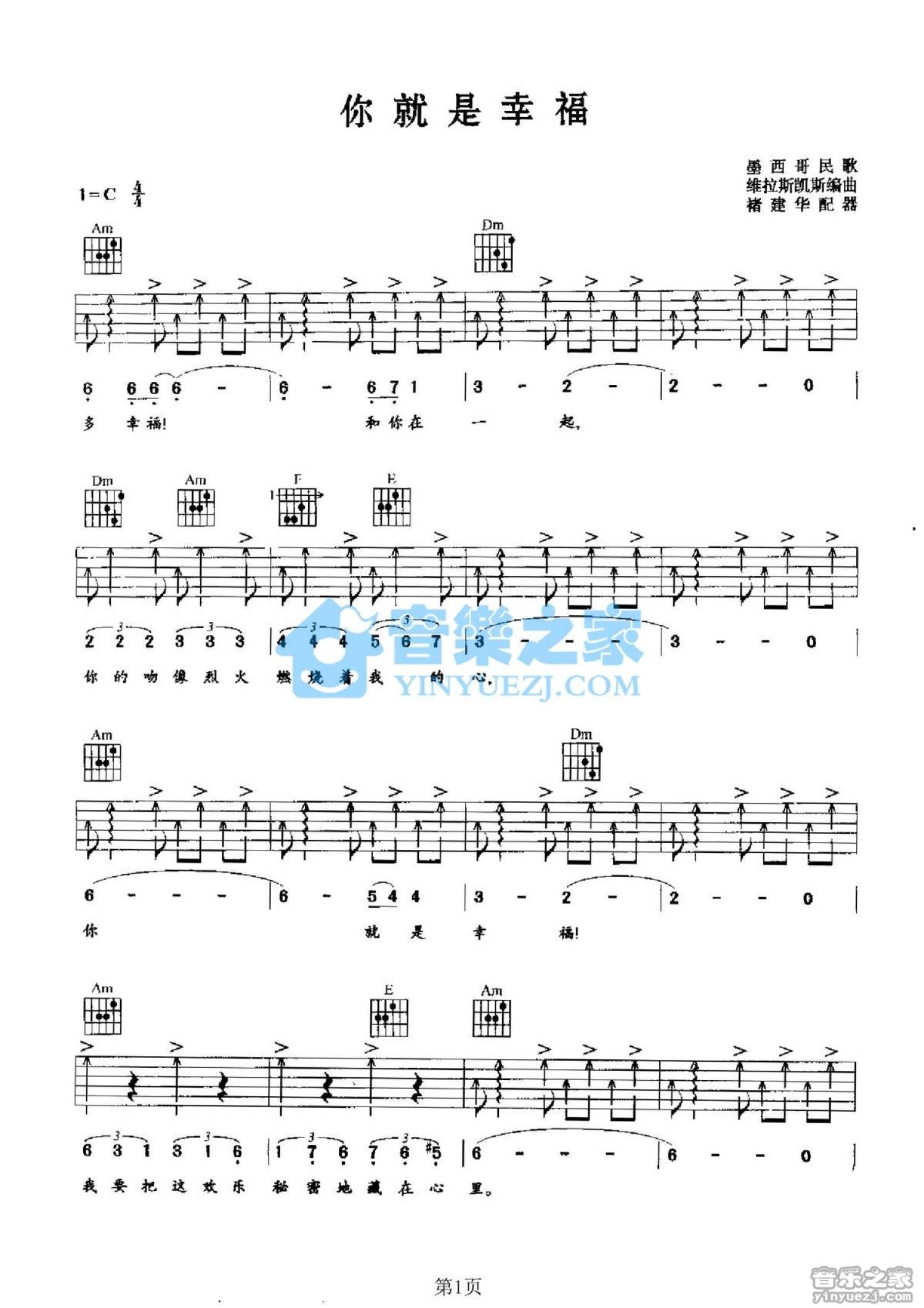 你就是幸福吉他谱 - 墨西哥民歌 - C调吉他弹唱谱