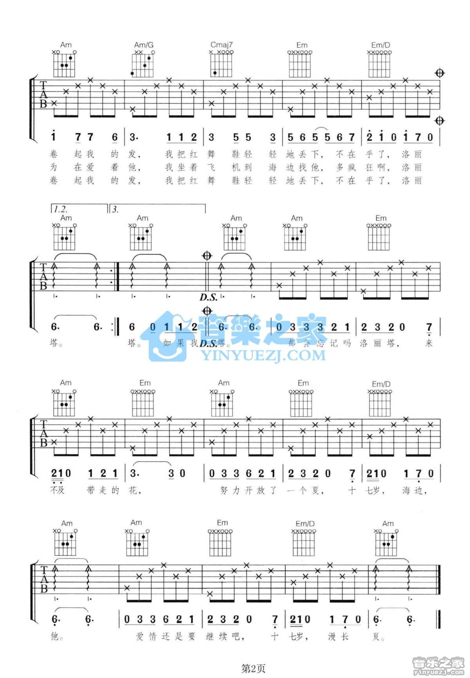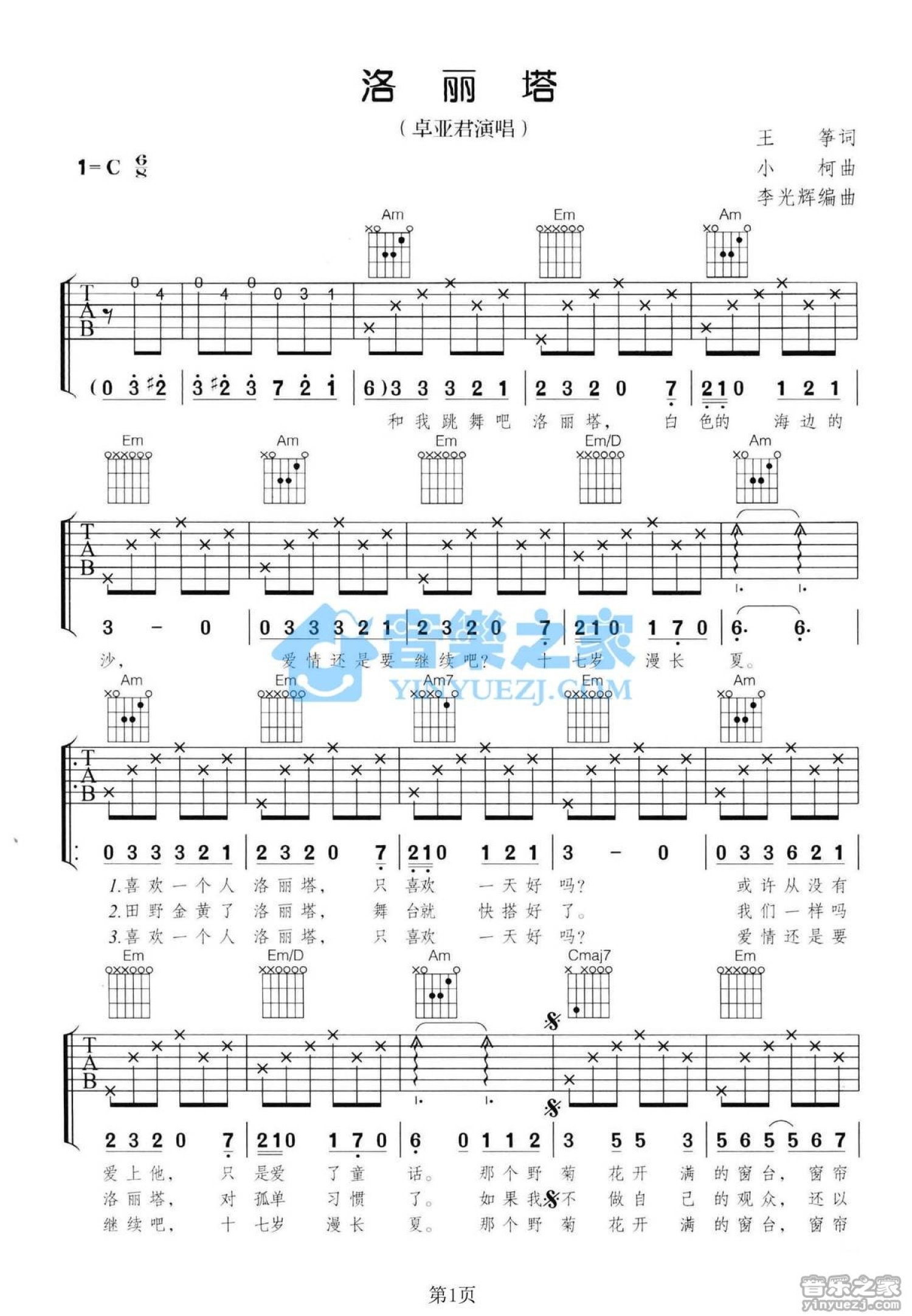 曲谱介绍: C调版卓亚君《洛丽塔》吉他弹唱六线谱