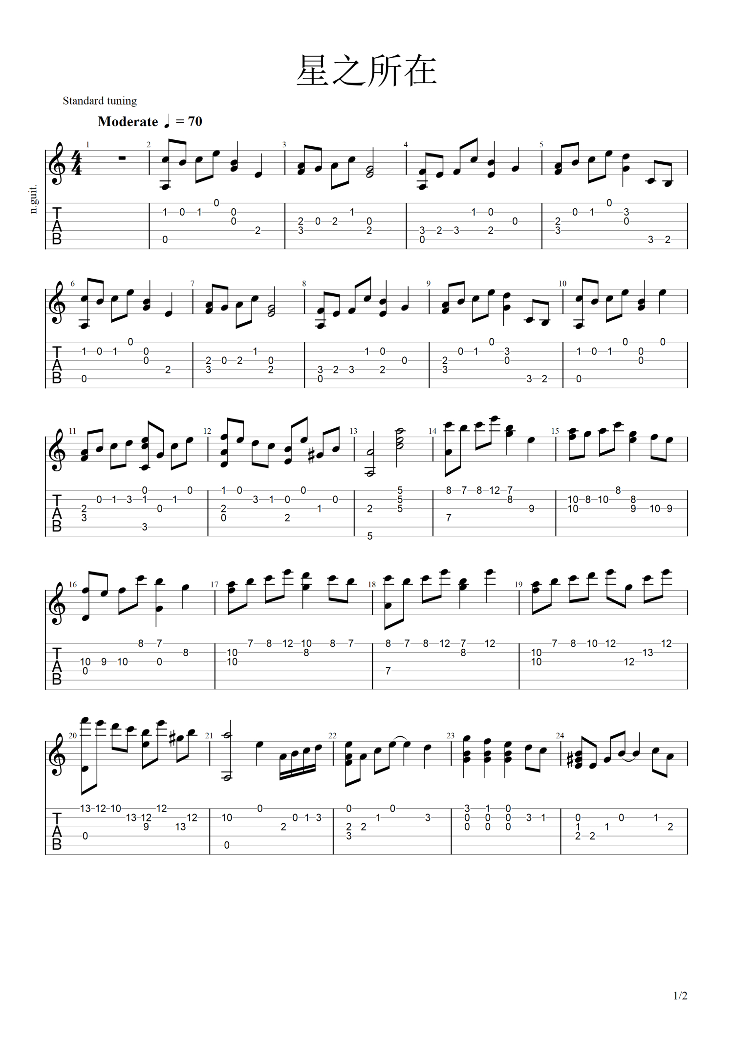 当前位置:琴谱网>吉他独奏>星之所在