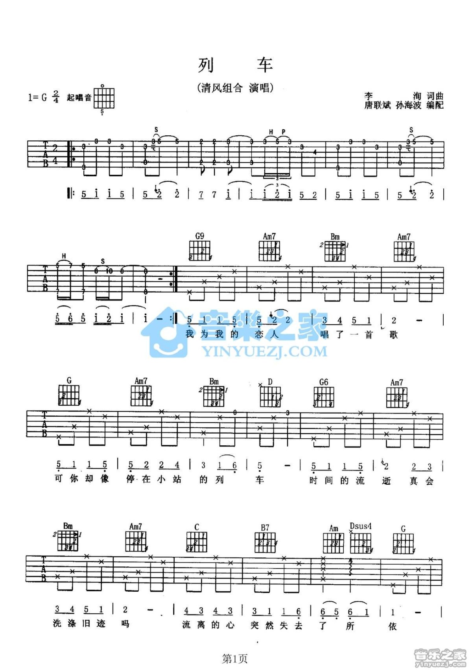 曲谱介绍: G调版清风组合《列车》吉他弹唱六线谱