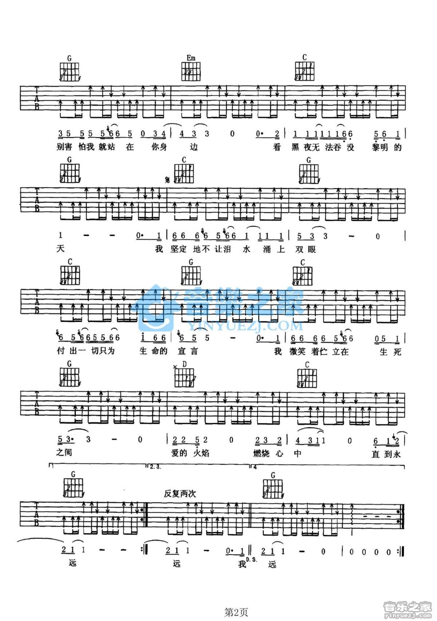曲谱介绍: G调版汪峰《直到永远》吉他弹唱六线谱