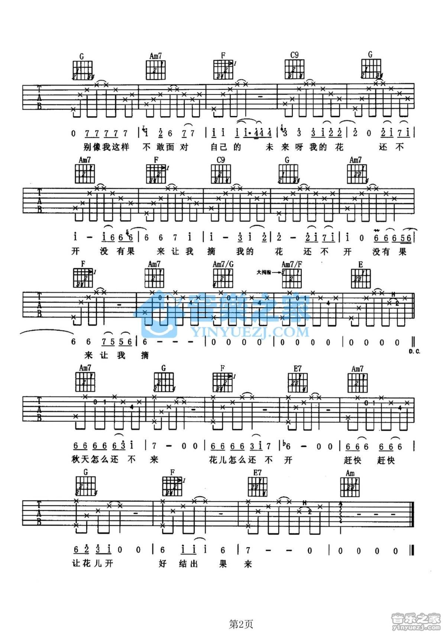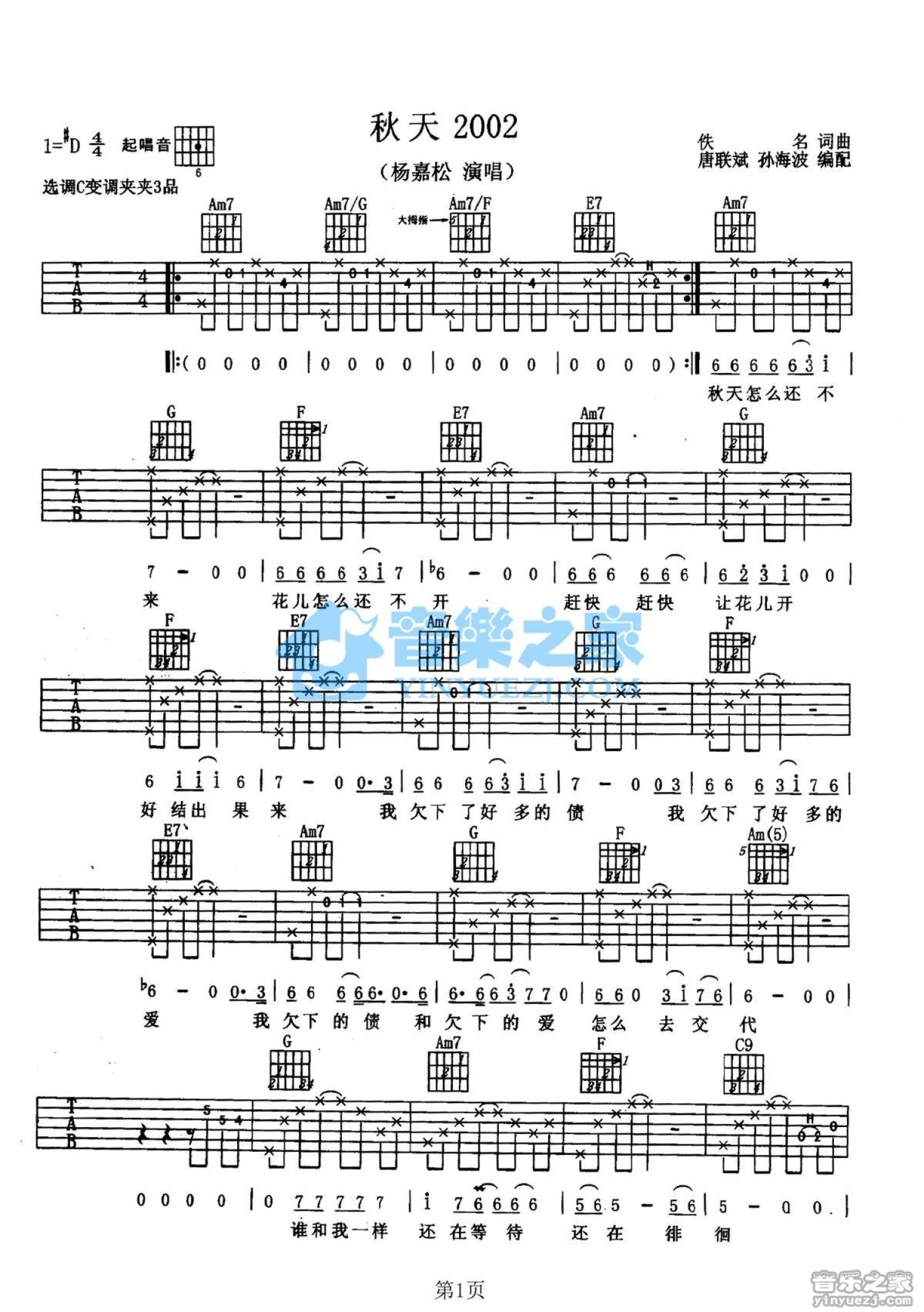曲谱介绍: C调版杨嘉松《秋天2002》吉他弹唱六线谱