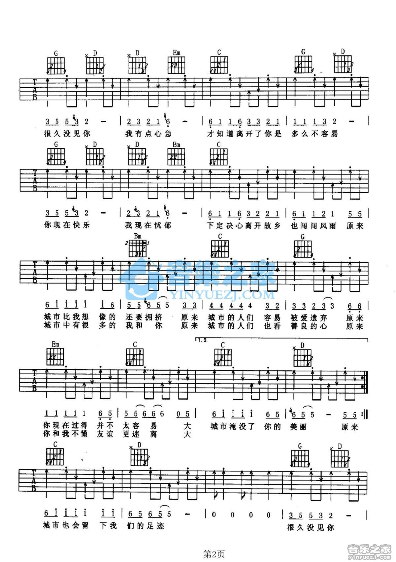当前位置:琴谱网>吉他弹唱>大城市