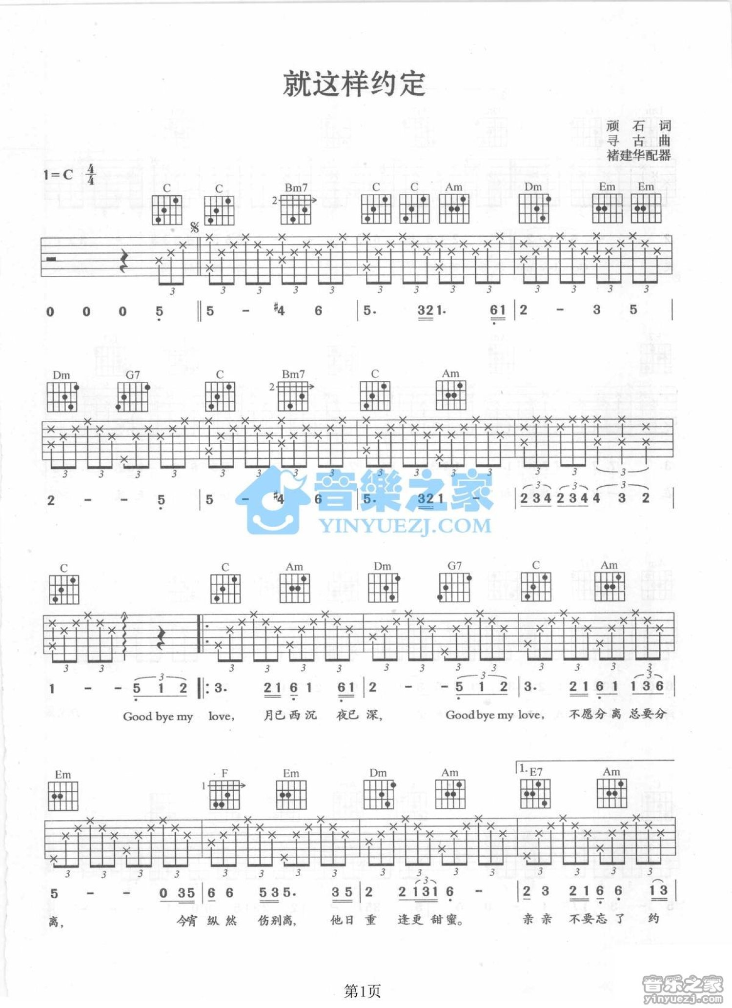曲谱介绍: C调版《就这样约定》吉他弹唱六线谱