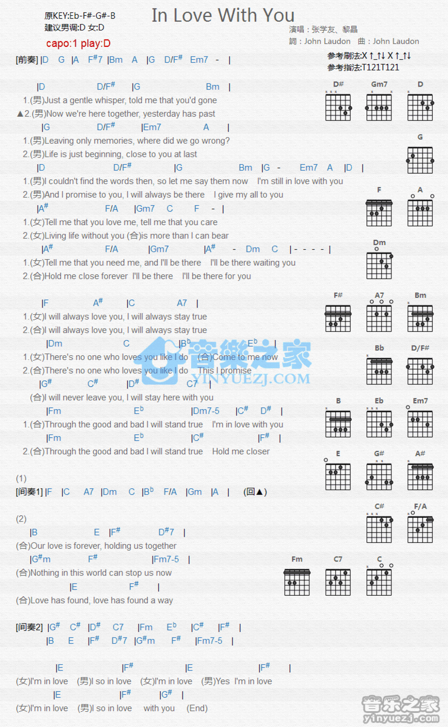 In Love With You吉他谱 - 张学友/黎晶 - D调吉他弹唱谱 - 和弦谱