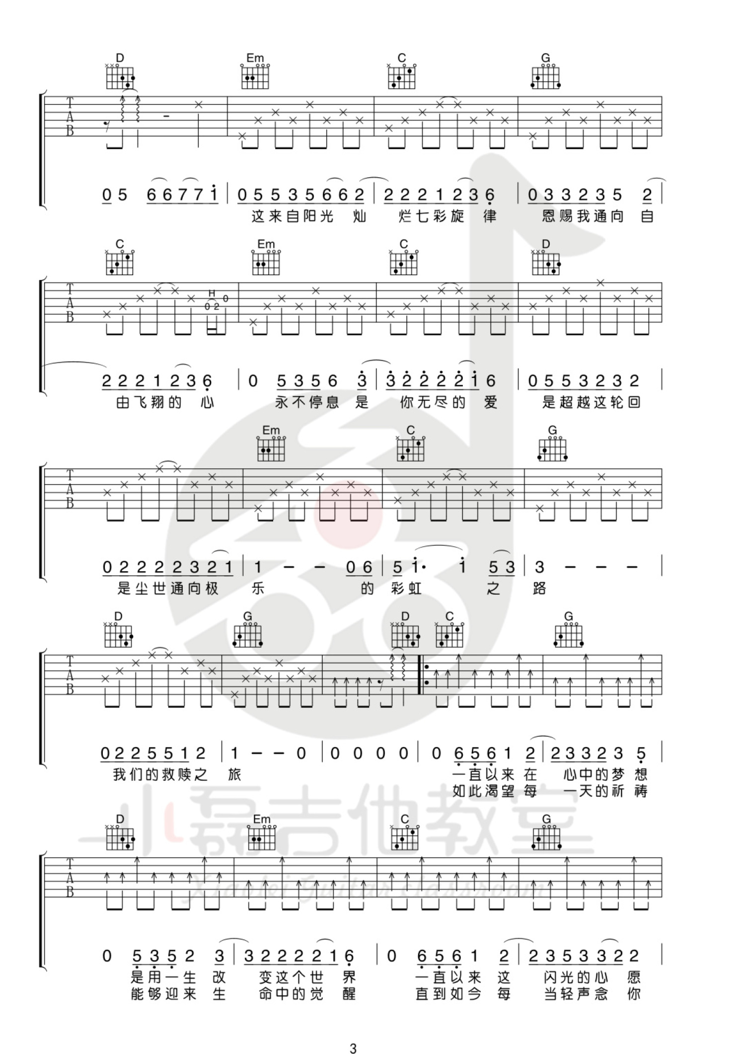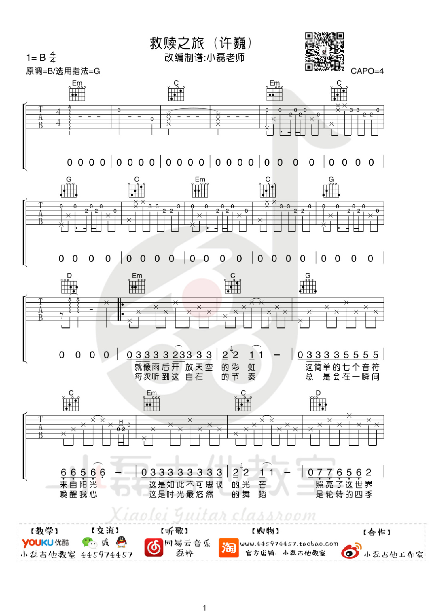曲谱介绍: 许巍《救赎之旅》吉他谱_G调吉他弹唱谱