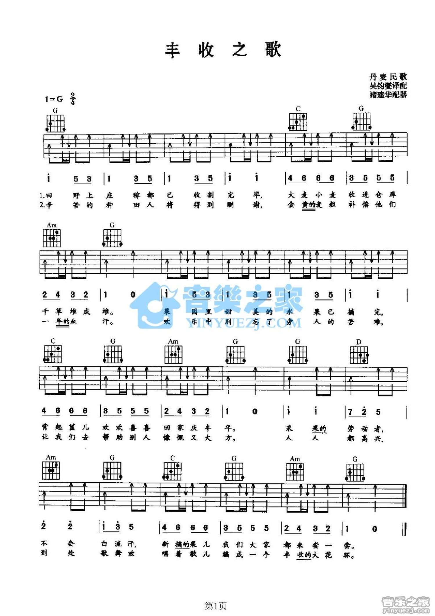 丰收之歌吉他谱 - 丹麦民歌 - G调吉他弹唱谱