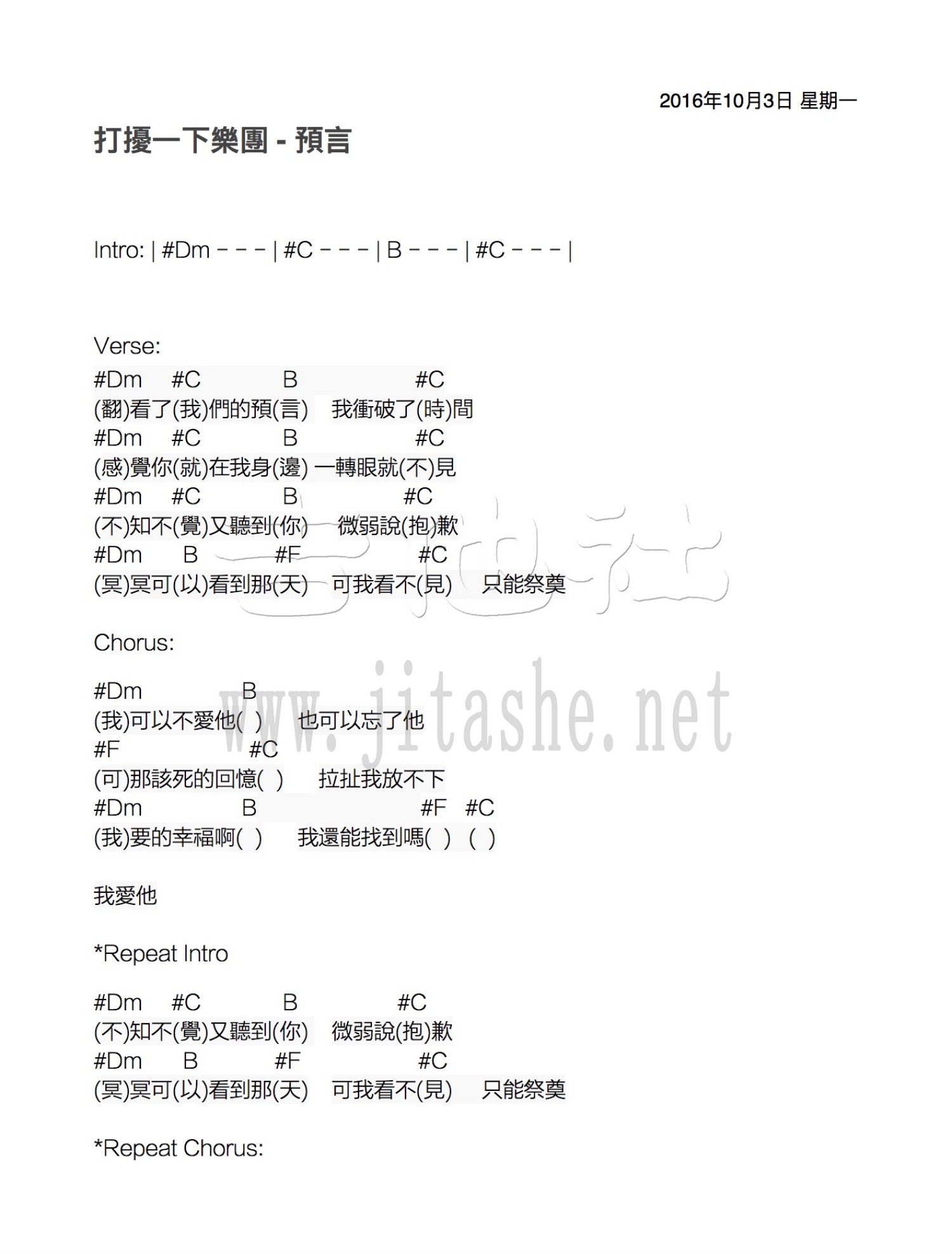 曲谱介绍: 打扰一下《预言》吉他和弦弹唱谱