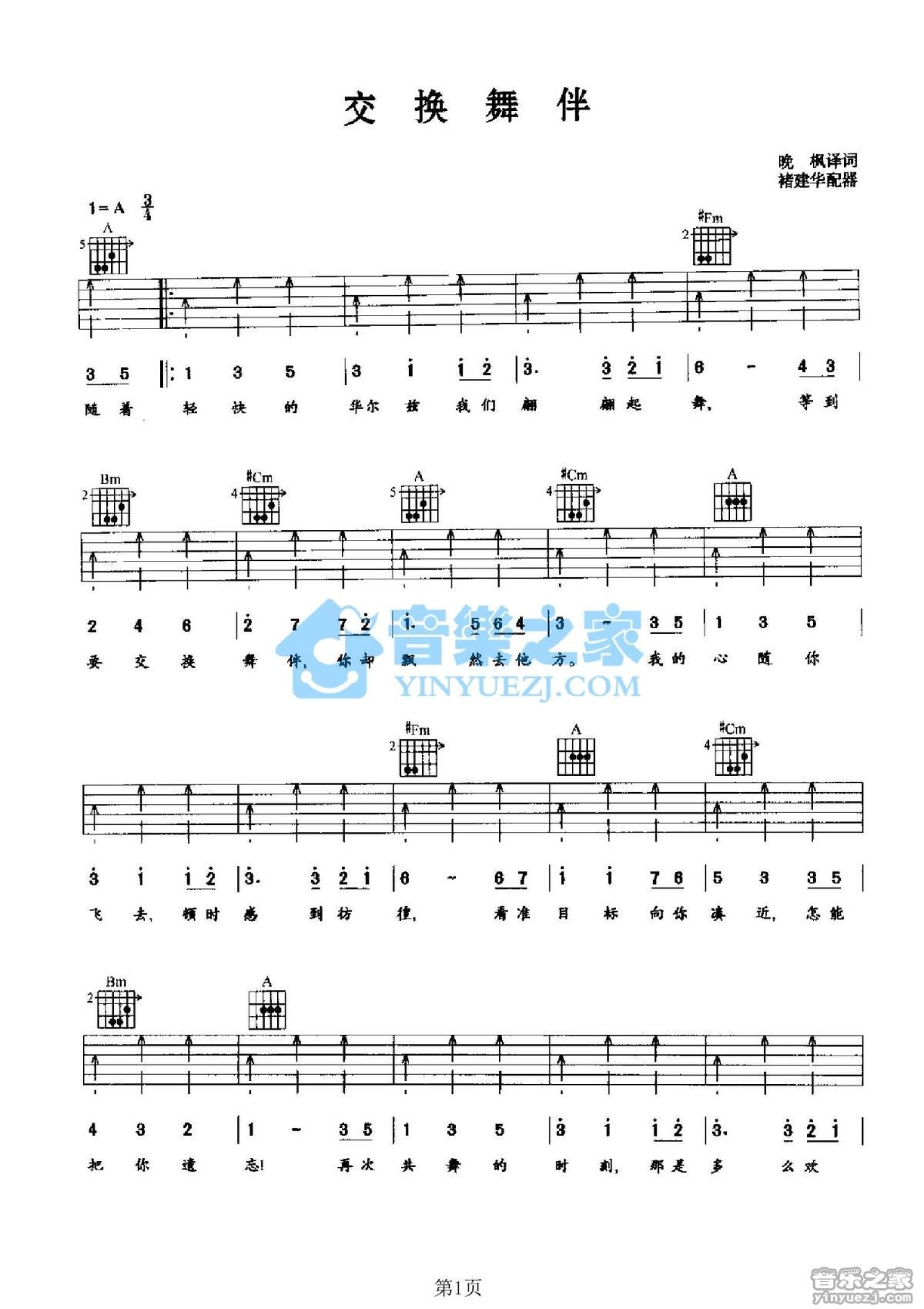 曲谱介绍: A调版PattiPage《ChangingPartners交换舞伴》吉他弹唱六线谱