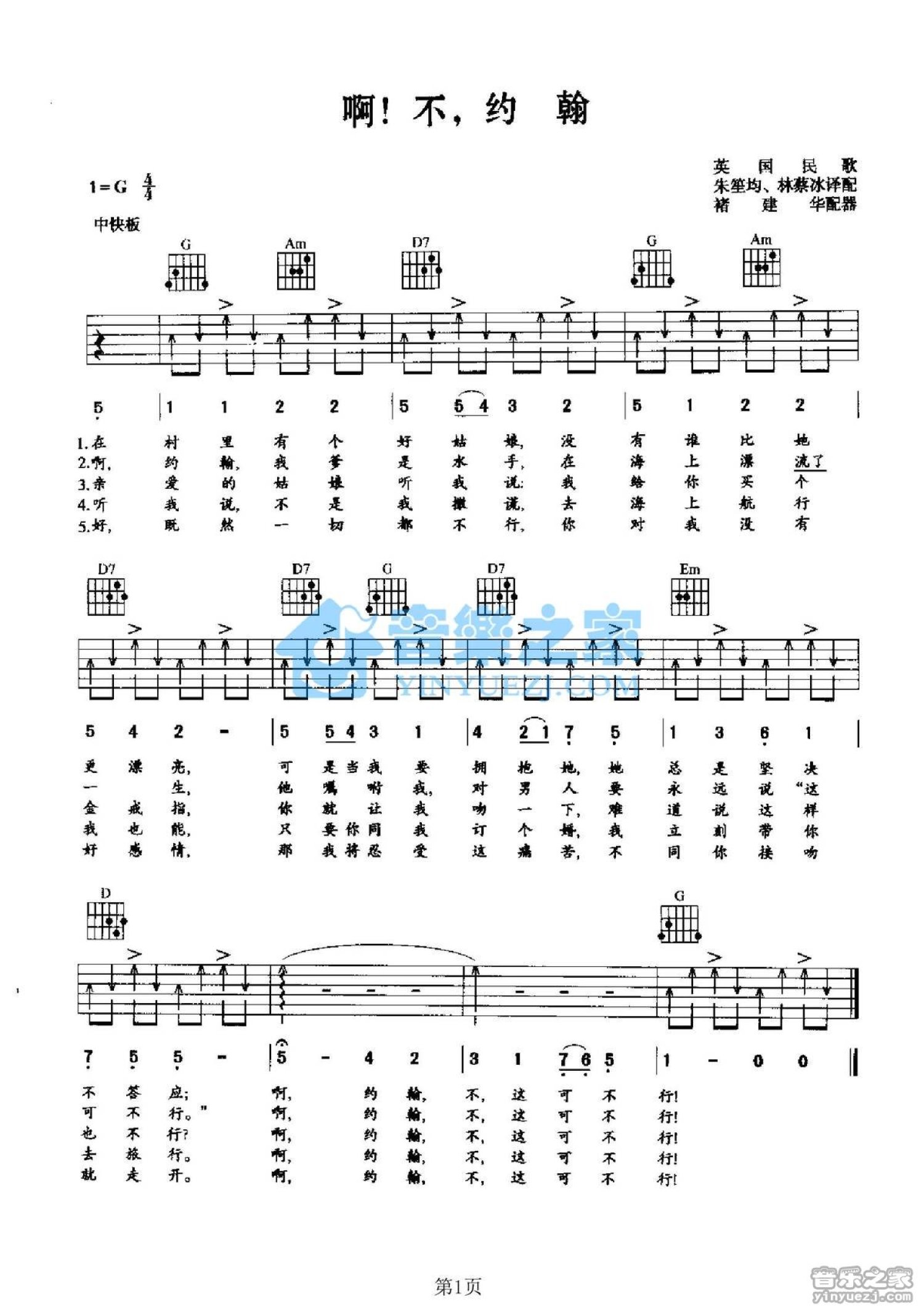 曲谱介绍: G调版英国民歌《啊约翰这可不行》吉他弹唱六线谱
