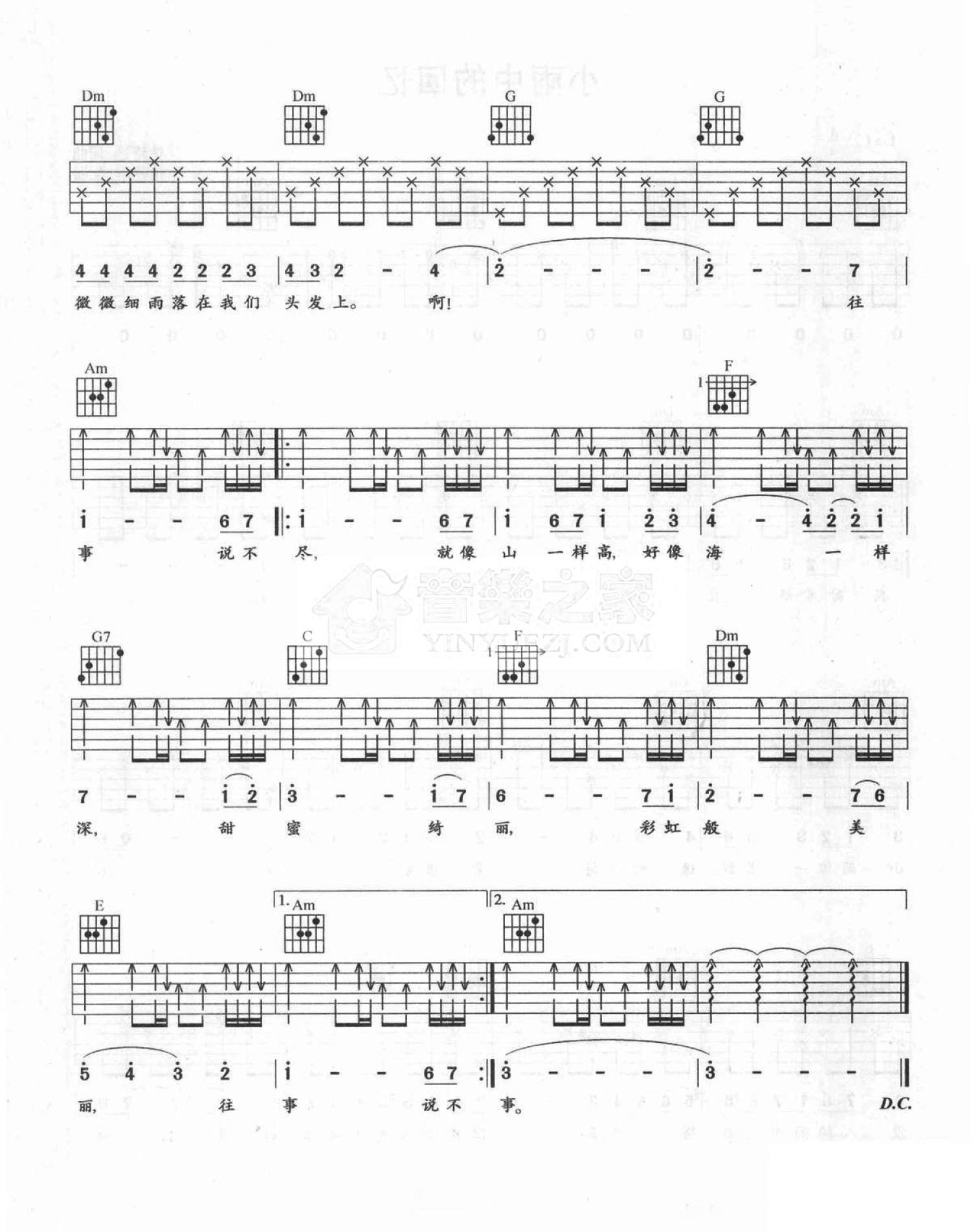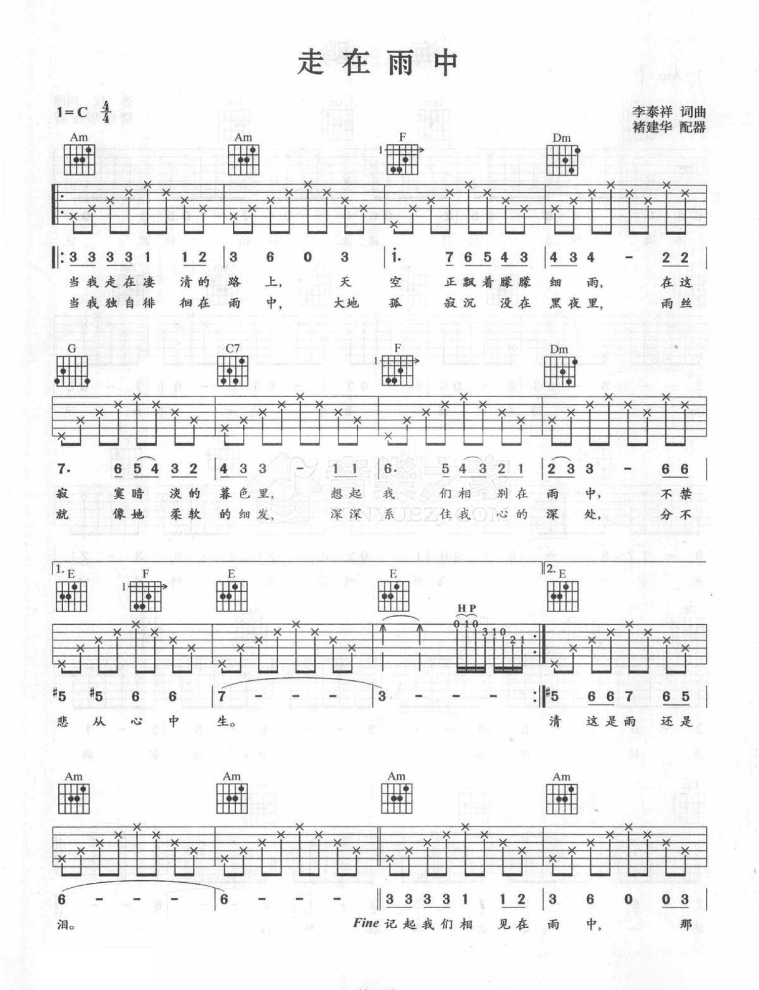 曲谱介绍: C调版齐豫《走在雨中》吉他弹唱六线谱
