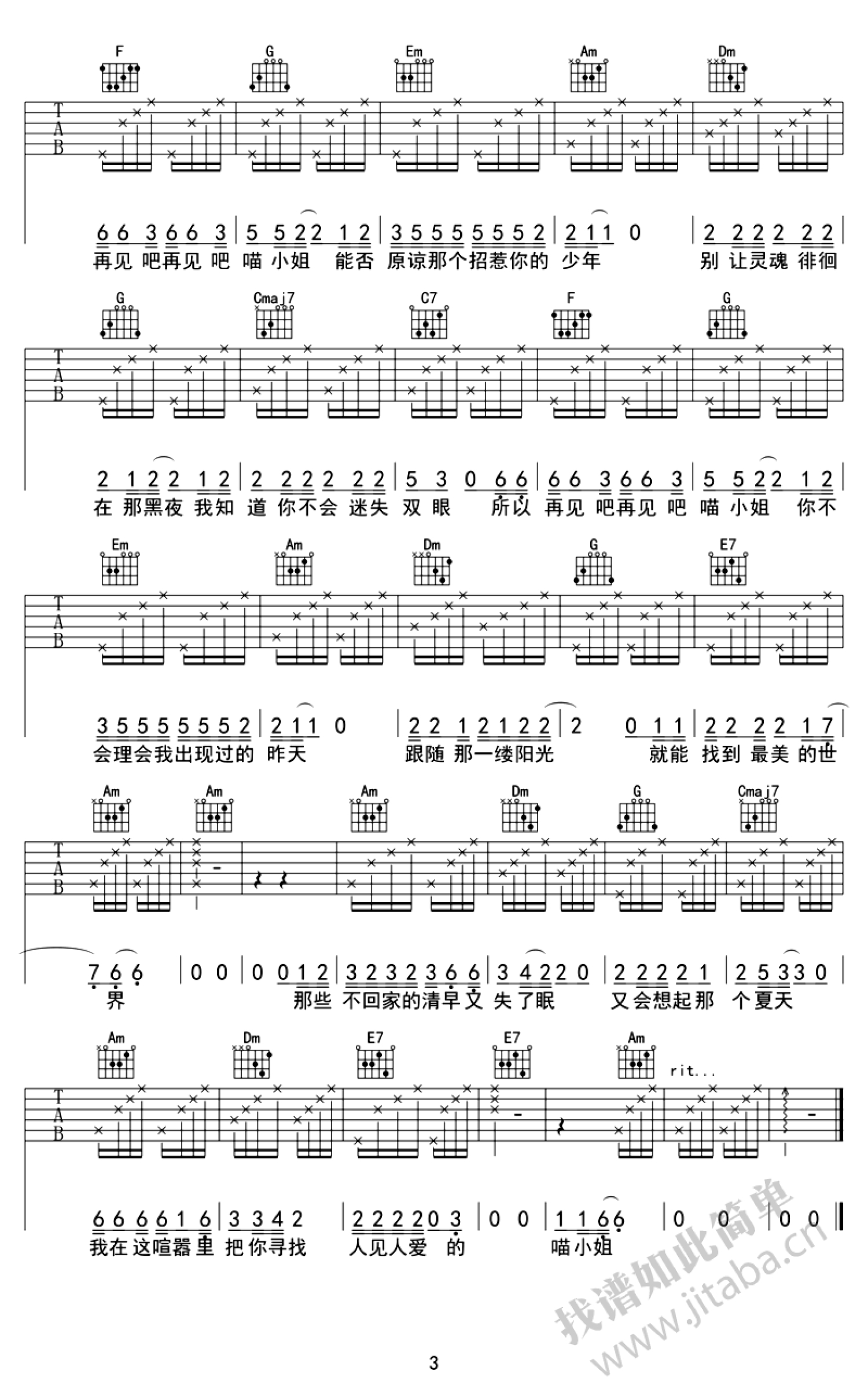 当前位置:琴谱网>吉他弹唱>再见吧喵小姐