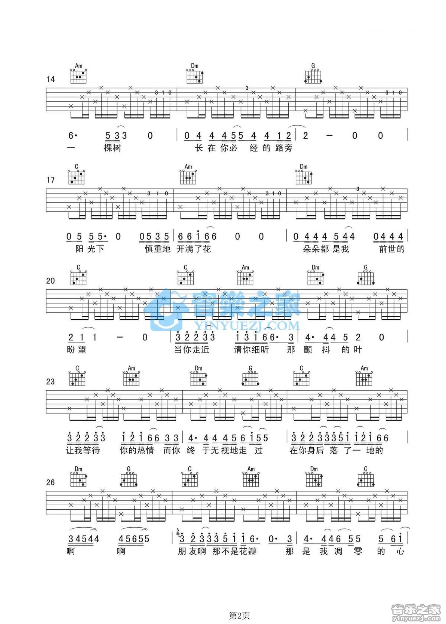 当前位置:琴谱网>吉他弹唱>一棵开花的树