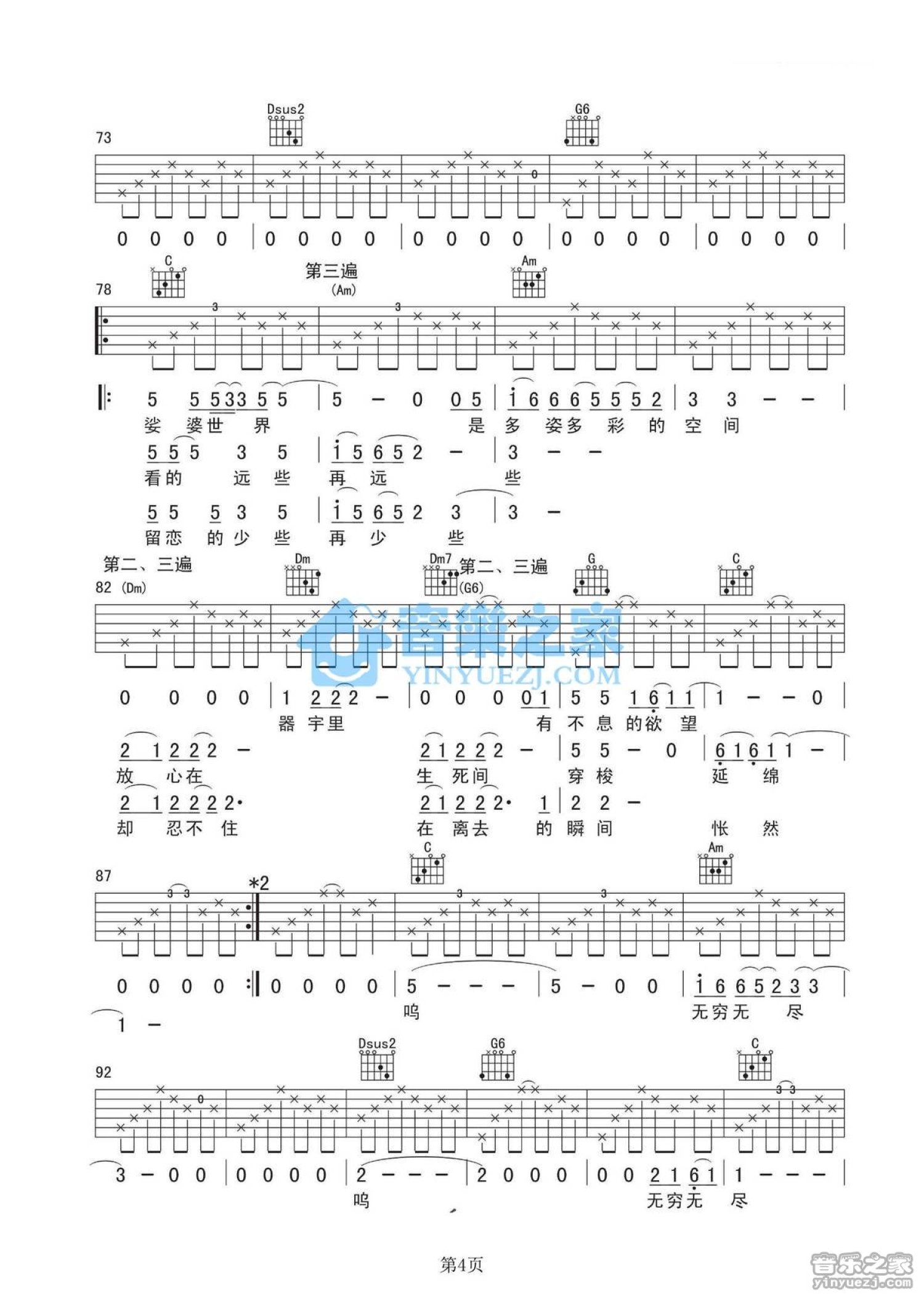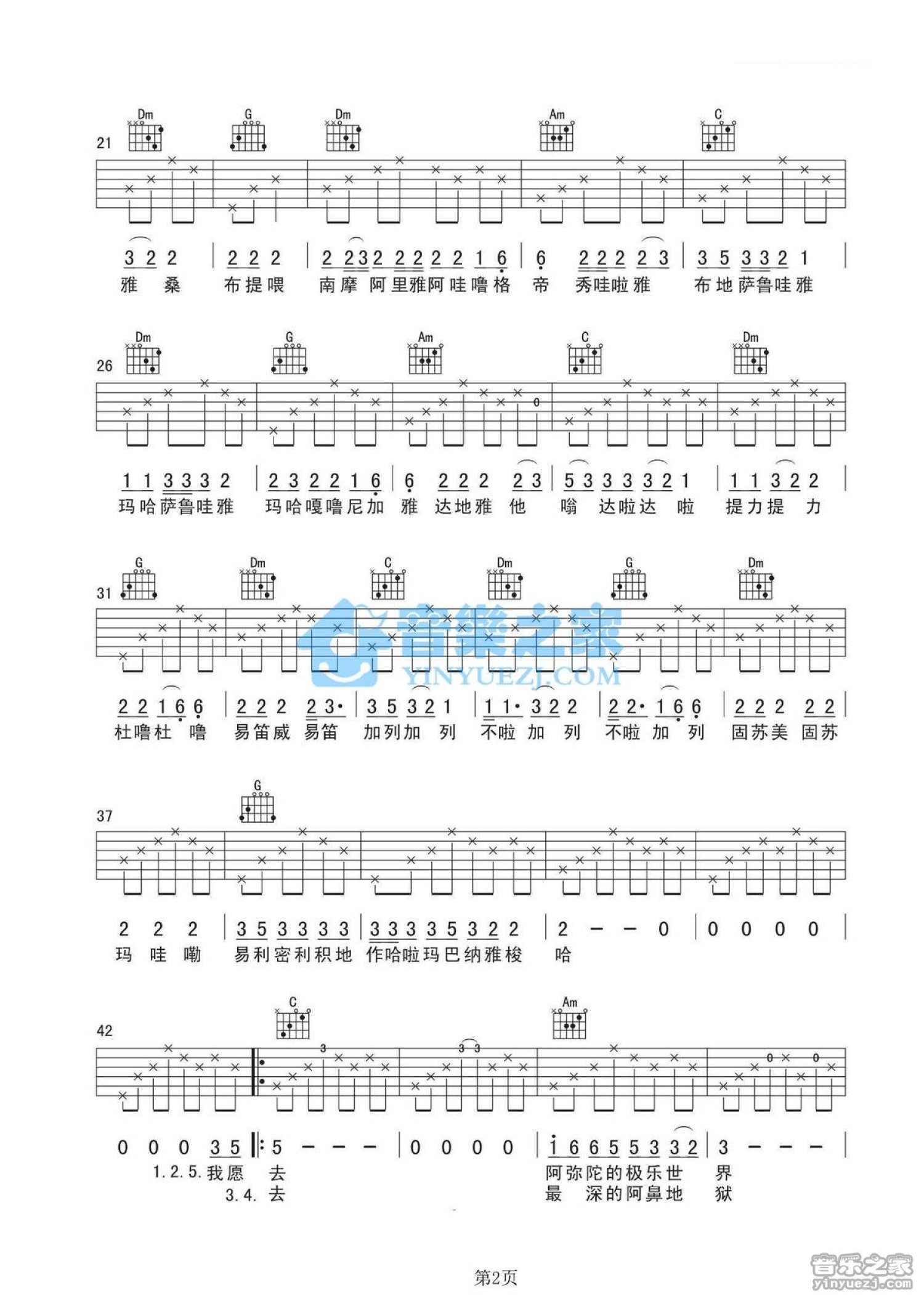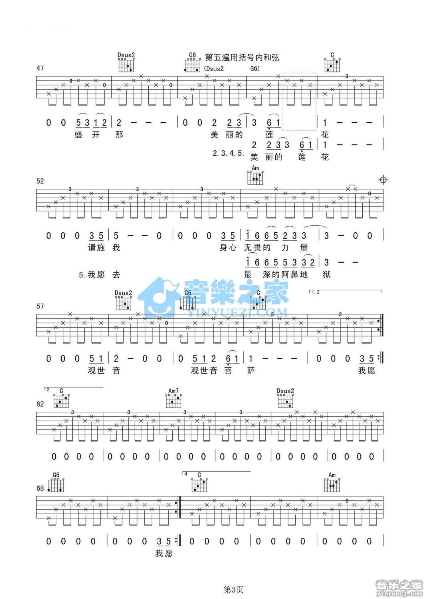 曲谱介绍: 丽江酒吧C调原版姚东林《思念观世音》吉他弹唱六线谱