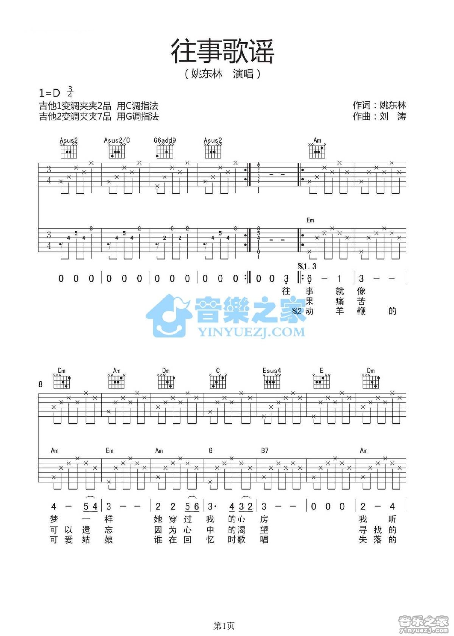 往事歌谣吉他谱 - 姚东林 - 吉他弹唱谱 - 原版