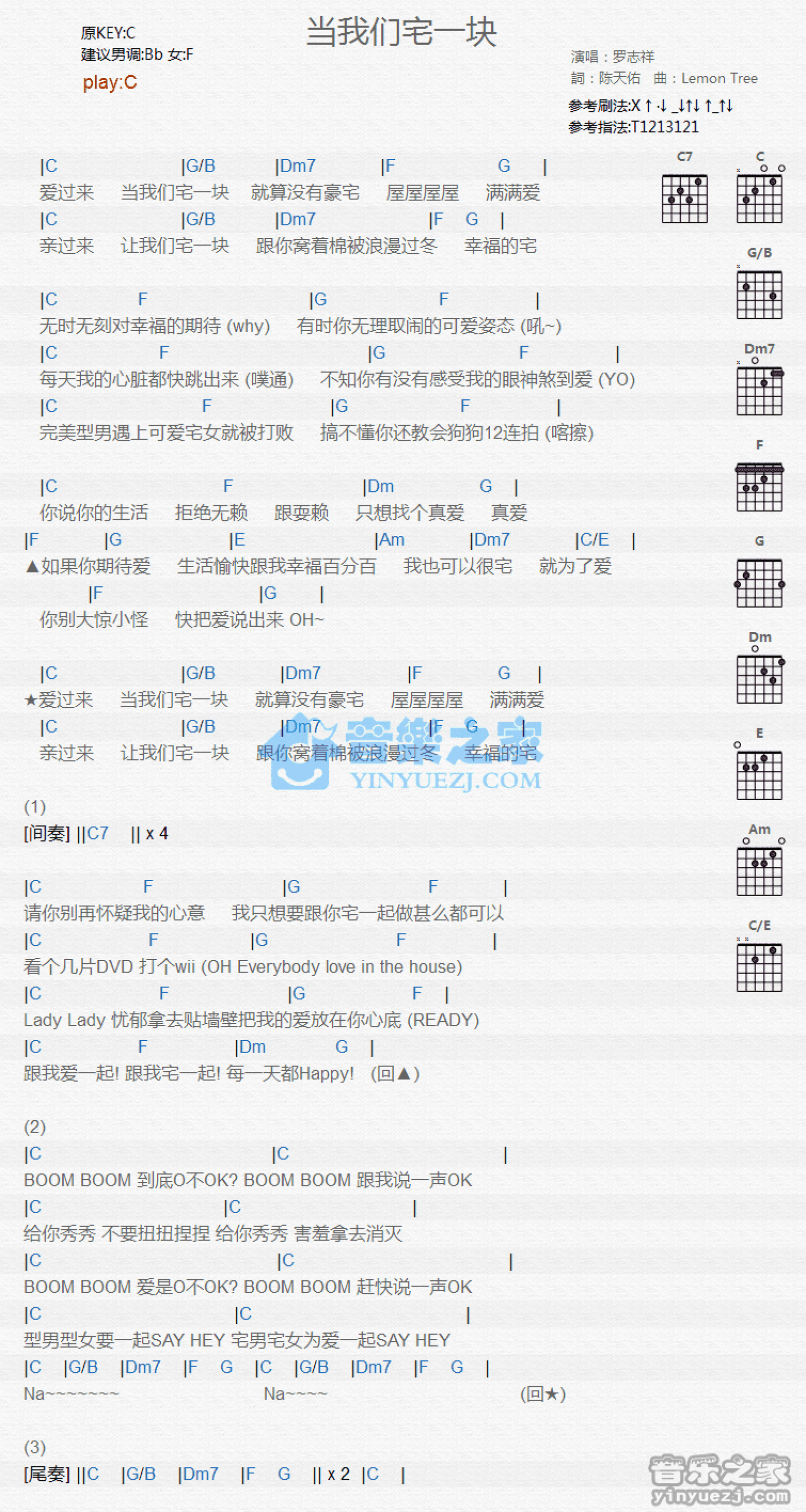 曲谱介绍: C调版罗志祥《当我们宅一块》吉他和弦弹唱谱
