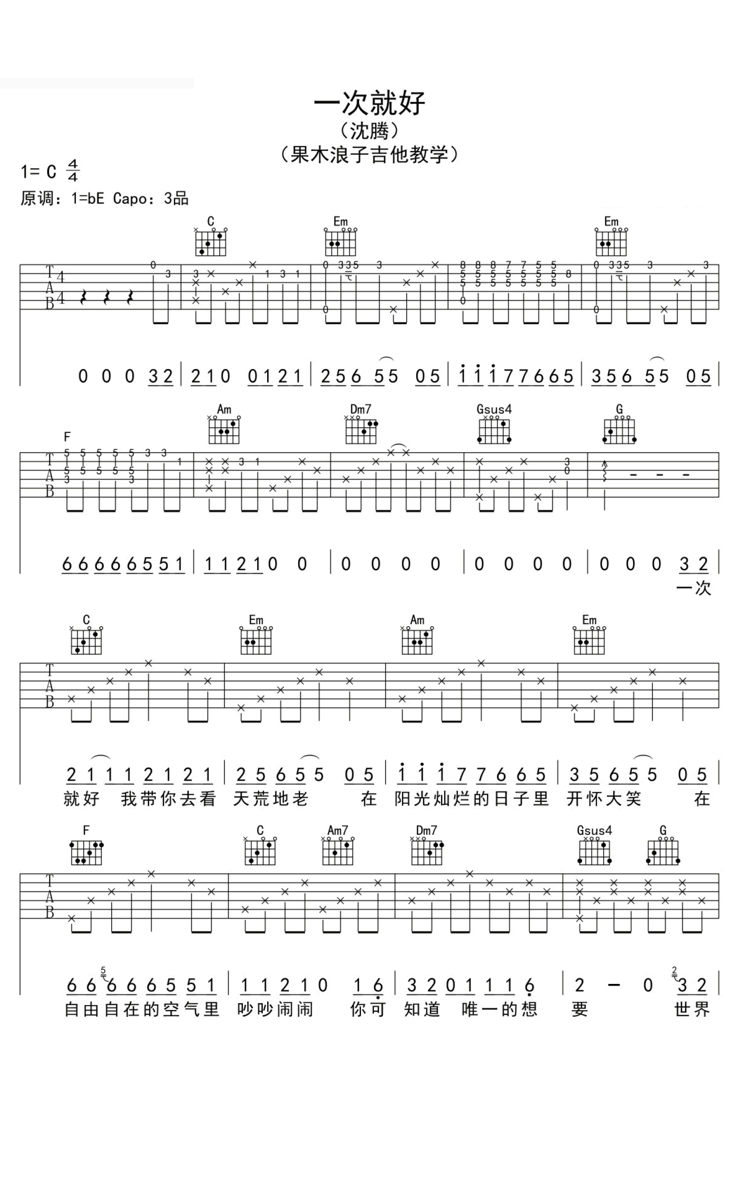 一次就好吉他谱 - 沈腾 - C调吉他弹唱谱