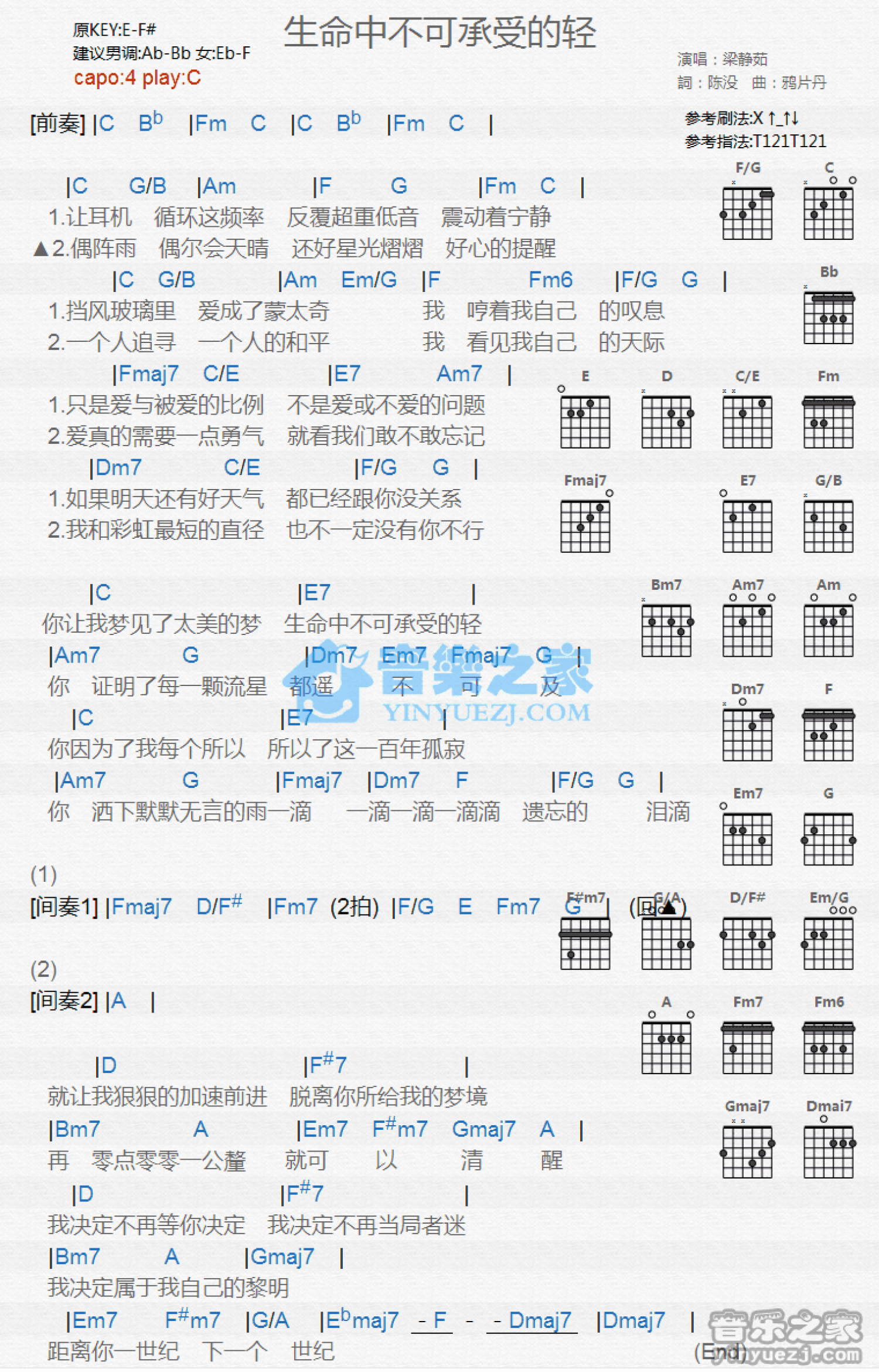 当前位置:琴谱网>吉他弹唱>生命中不可承受的轻