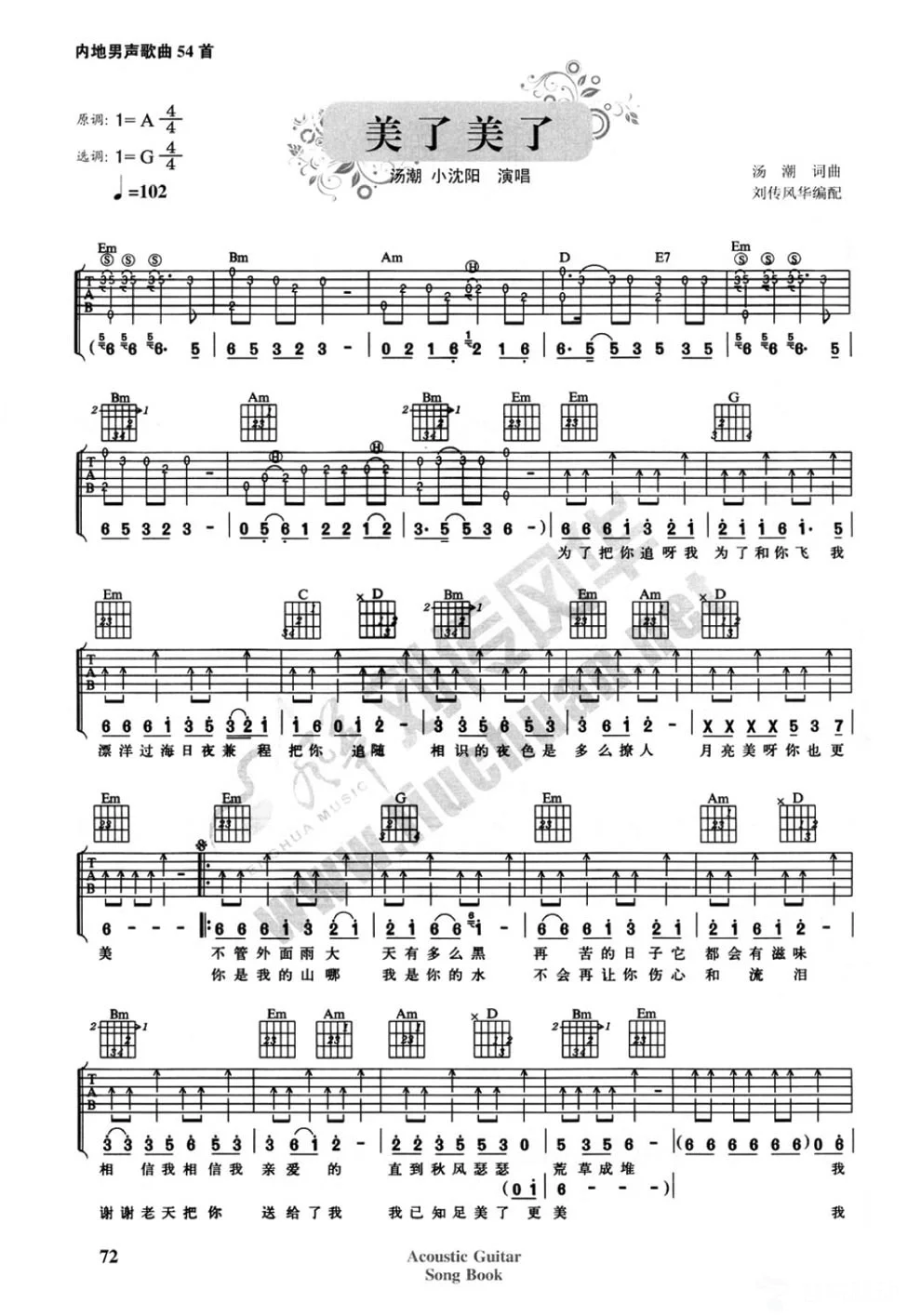 曲谱介绍: G调版汤潮/小沈阳《美了美了》吉他弹唱六线谱