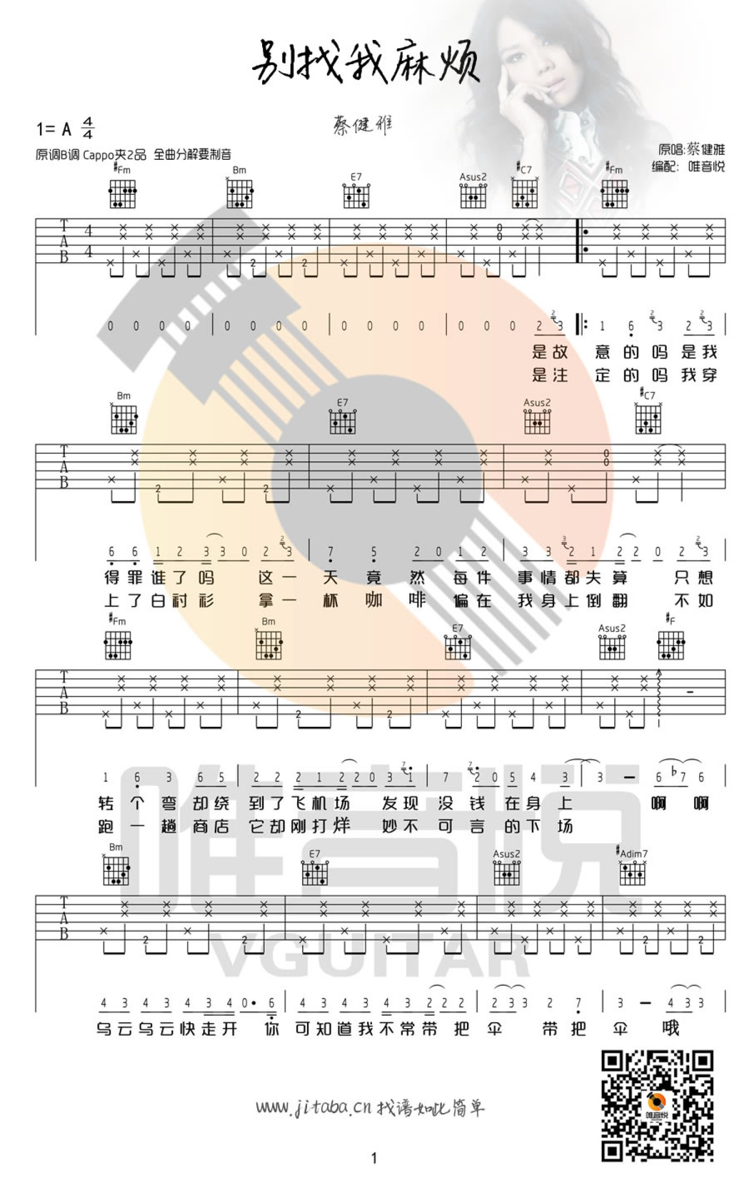 别找我麻烦吉他谱 - 蔡健雅 - A调吉他弹唱谱